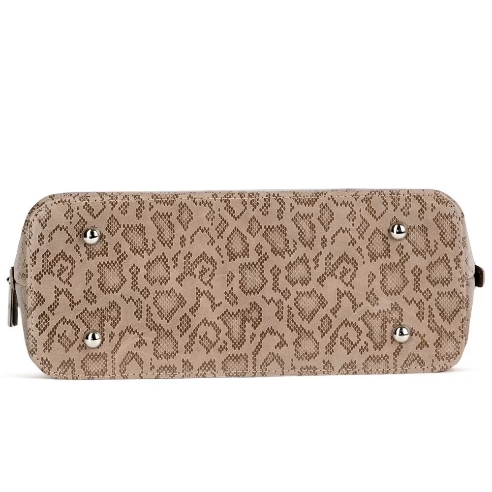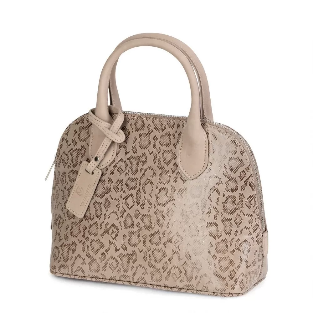 Сумка от бренда Valigetti из натуральной кожи выполнена в бежевом цвете. Модель с двумя ручками и съемным плечевым ремнем. На задней стороне карман на молнии для быстрого доступа. Внутри одно основное отделение с фирменной подкладкой, накладной карман и карман на молнии. На дне сумки ножки для защиты от износа и загрязнений.