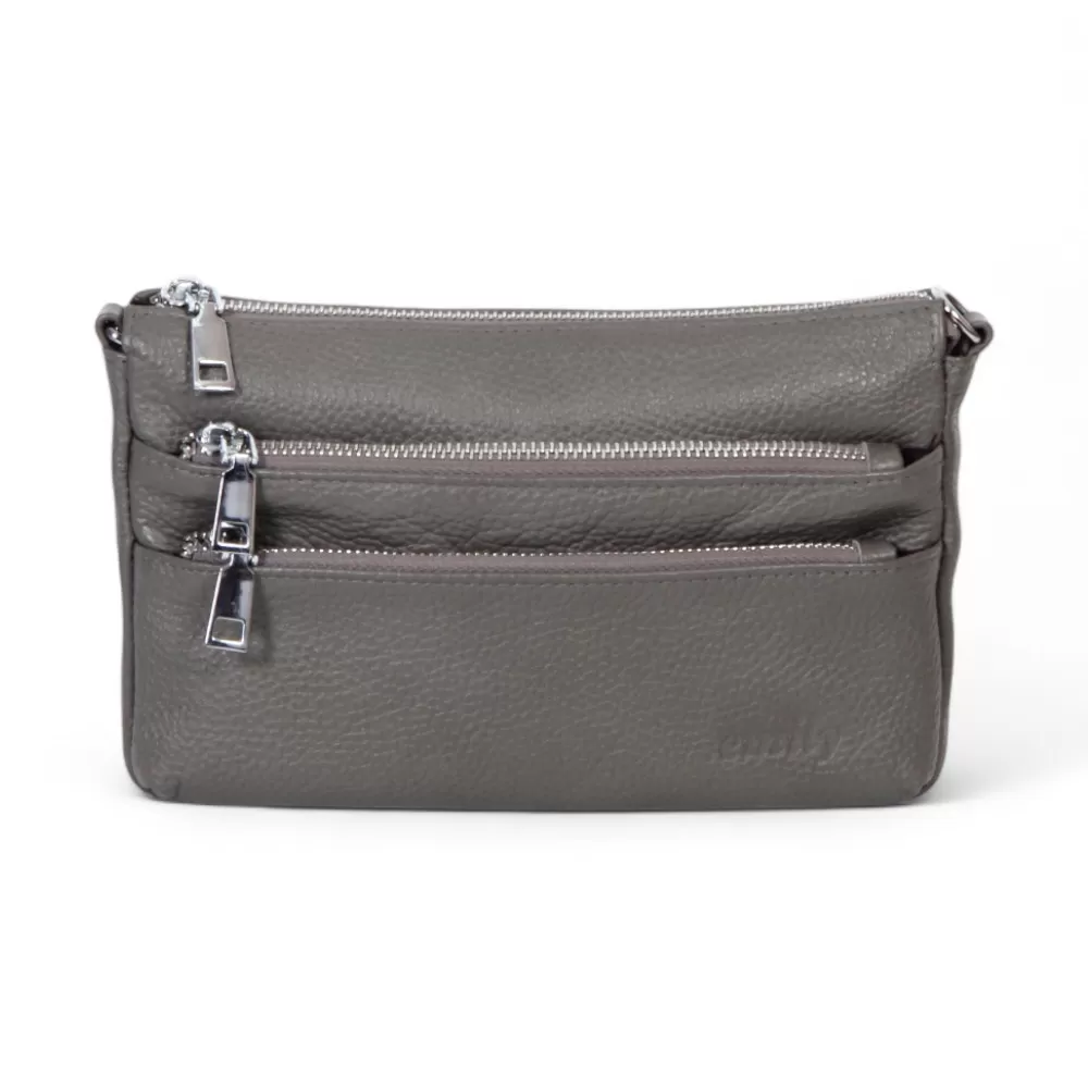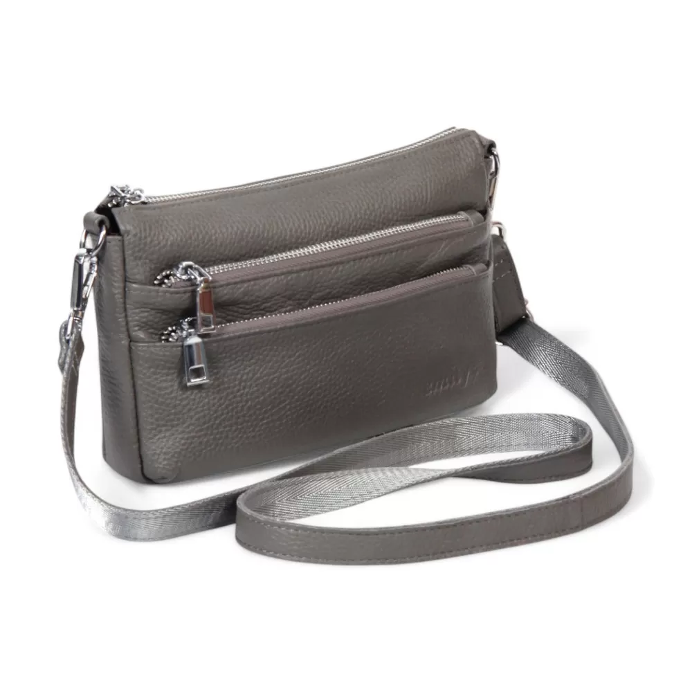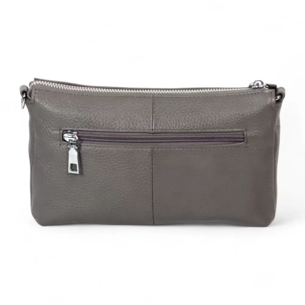 Сумка клатч кросс-боди от бернда Emily выполнена из натуральной кожи в сером цвете. Модель с регулируемым плечевым ремнем. На лицевой стороне два кармана на молнии. На задней — карман быстрого доступа. Внутри одно основное отделение на молнии: текстильная подкладка и карман на молнии.