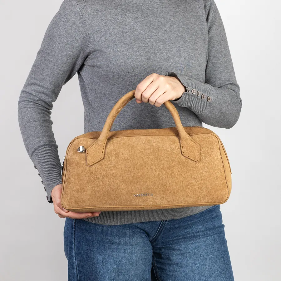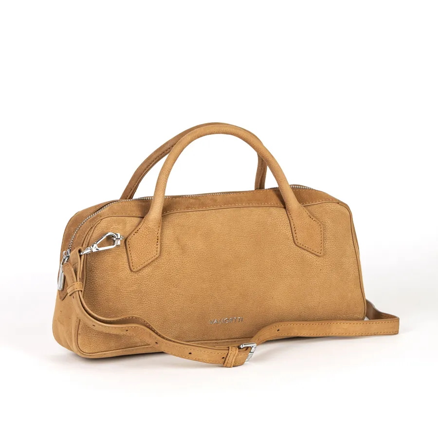 Стильная женская сумка-багет фирмы Valigetti из натуральной кожи мелко зернистой структуры. Прошита фирменной подкладочной тканью. Имеет вшитые кожаные ручки. Внутри одно под молнией, карман на молнии и кармашек для мелких вещей. В комплект входит прицепной плечевой ремень