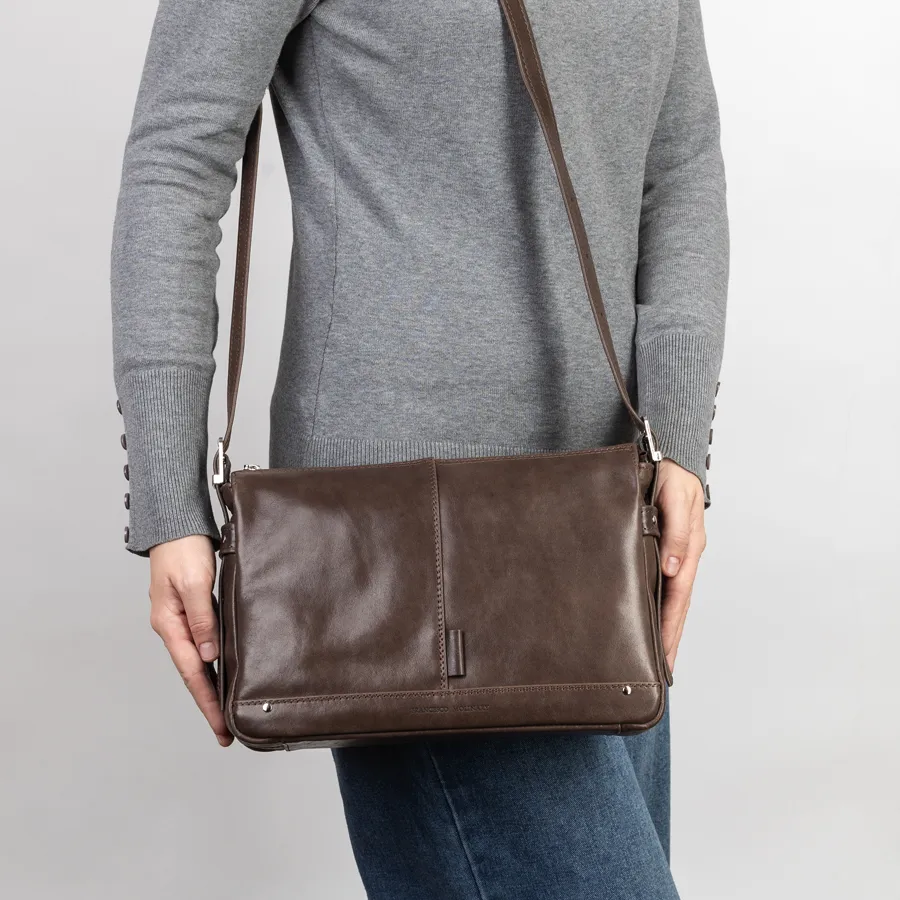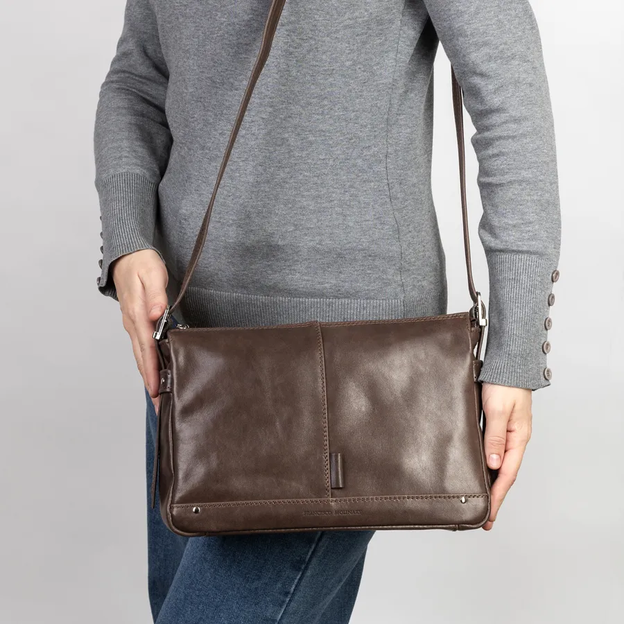 Сумка в деловом стиле от торговой марки Francesco Molinary выполнена из натуральной кожи коричневого цвета. Модель с одной удлиненной ручкой. Одно отделение с фирменной подкладкой. Основное отделение на молнии, внутри: карман на молнии. На задней стороне – карман на молнии.