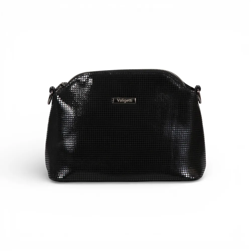 Сумка от бренда Valigetti выполнена из натуральной кожи черного цвета. Модель с удлиненной ручкой и длинным регулируемым плечевым ремнем. Отделение на молнии. Внутри: текстильная подкладка, карман и средник на молнии, накладной карман. На задней стороне — карман на молнии.