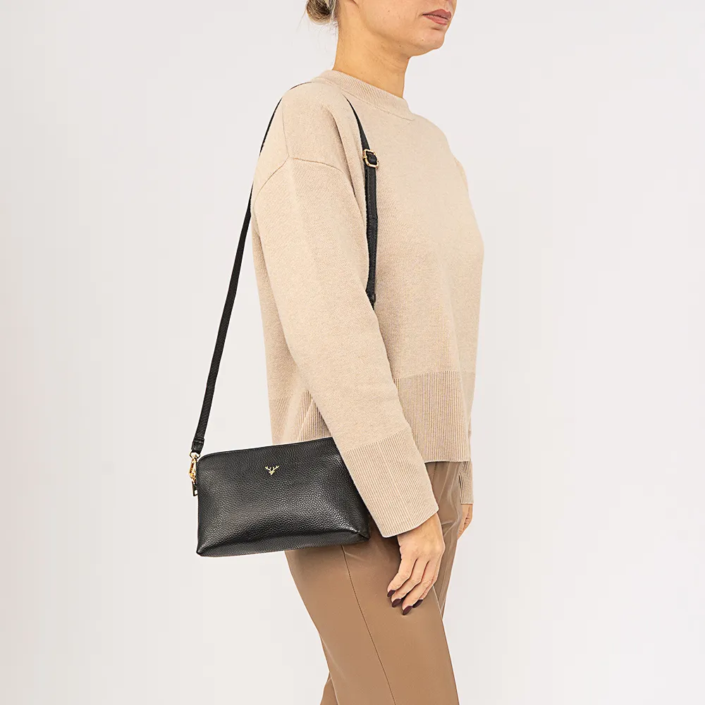 Сумка от торговой марки Poshete из натуральной кожи коричневого цвета. Лицевая сторона с оригинальным декором. Компактная модель со съемным регулируемым плечевым ремнем и ремешком для запястья. Отделение на молнии. Внутри: фирменная подкладка, карман на молнии, накладной карман. На задней стороне – карман на молнии.