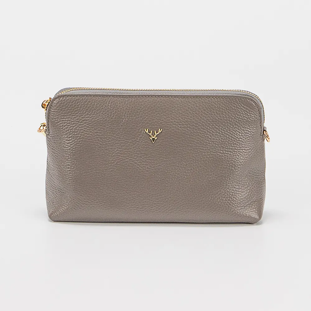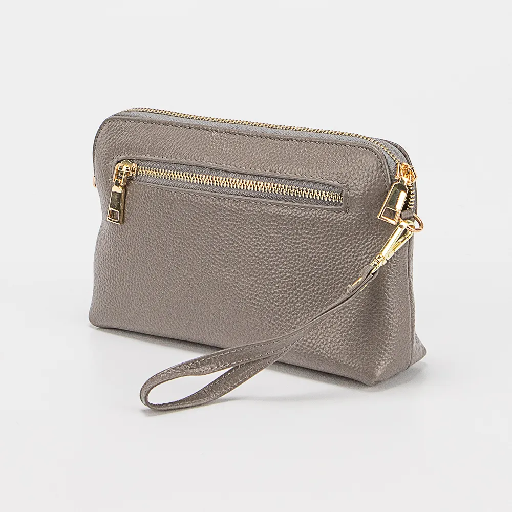 Сумка от торговой марки Poshete из натуральной кожи коричневого цвета. Лицевая сторона с оригинальным декором. Компактная модель со съемным регулируемым плечевым ремнем и ремешком для запястья. Отделение на молнии. Внутри: фирменная подкладка, карман на молнии, накладной карман. На задней стороне – карман на молнии.
