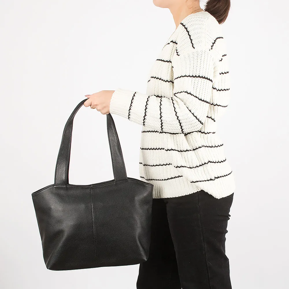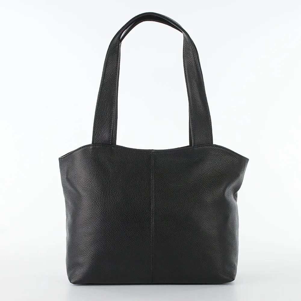 Сумка от торговой марки Poshete выполнена из натуральной кожи темно-серого цвета. Модель с двумя удлиненными ручками. Отделение на молнии с фирменной подкладкой и карманами.