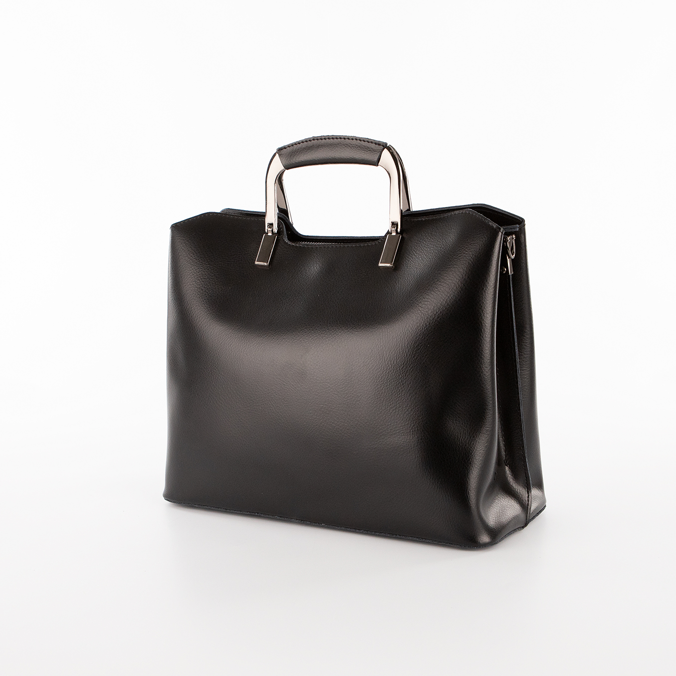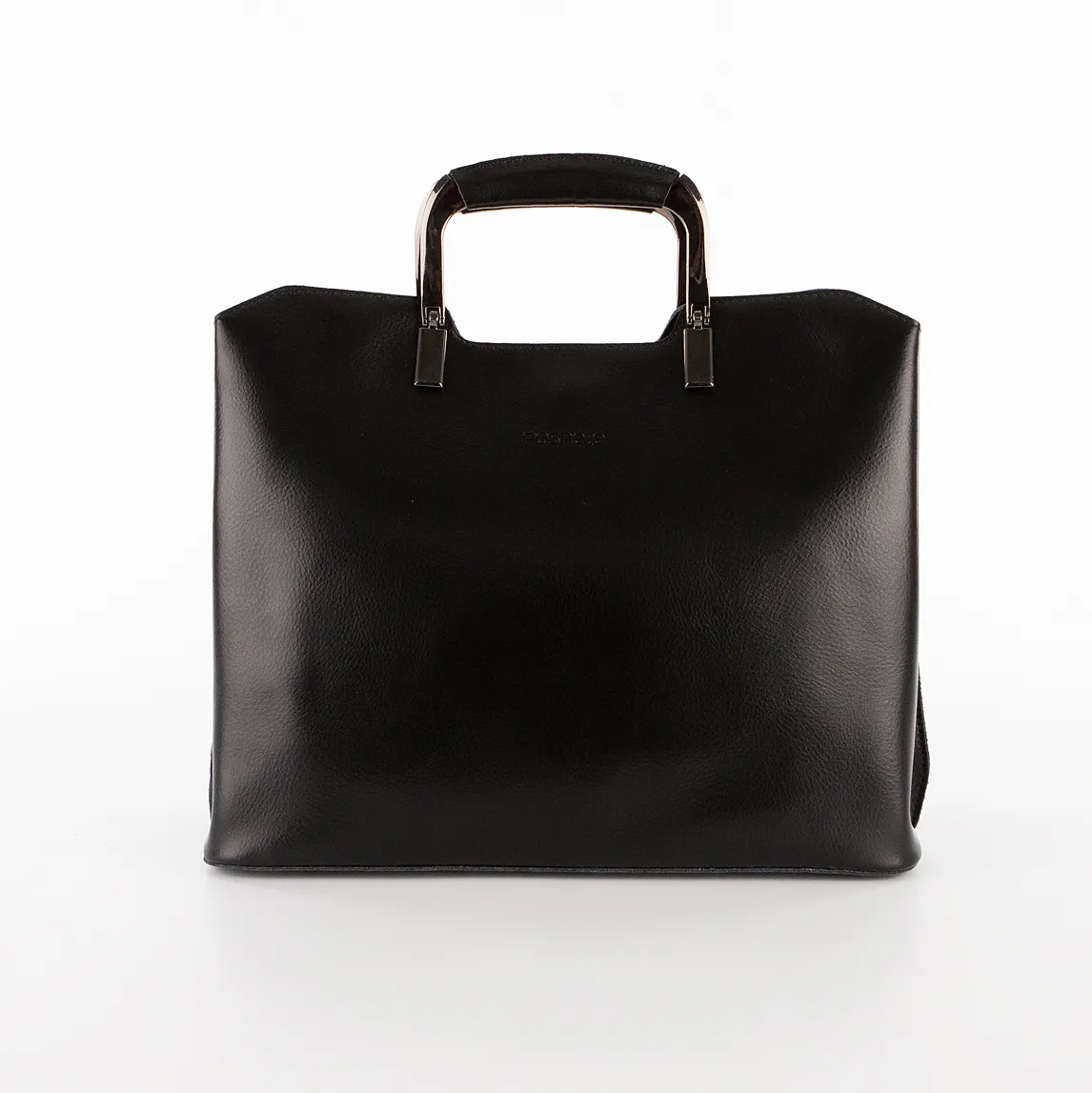 Сумка от торговой марки Poshete из натуральной кожи черного цвета. Модель с двумя металлическими ручками с кожаной накладкой, съемным плечевым ремнем. Три отделения с частичной подкладкой. Крайние фиксируются кнопкой. Среднее отделение на молнии. Внутри: средник и карман на молнии, накладной карман. Дно оснащено ножками для защиты от износа.