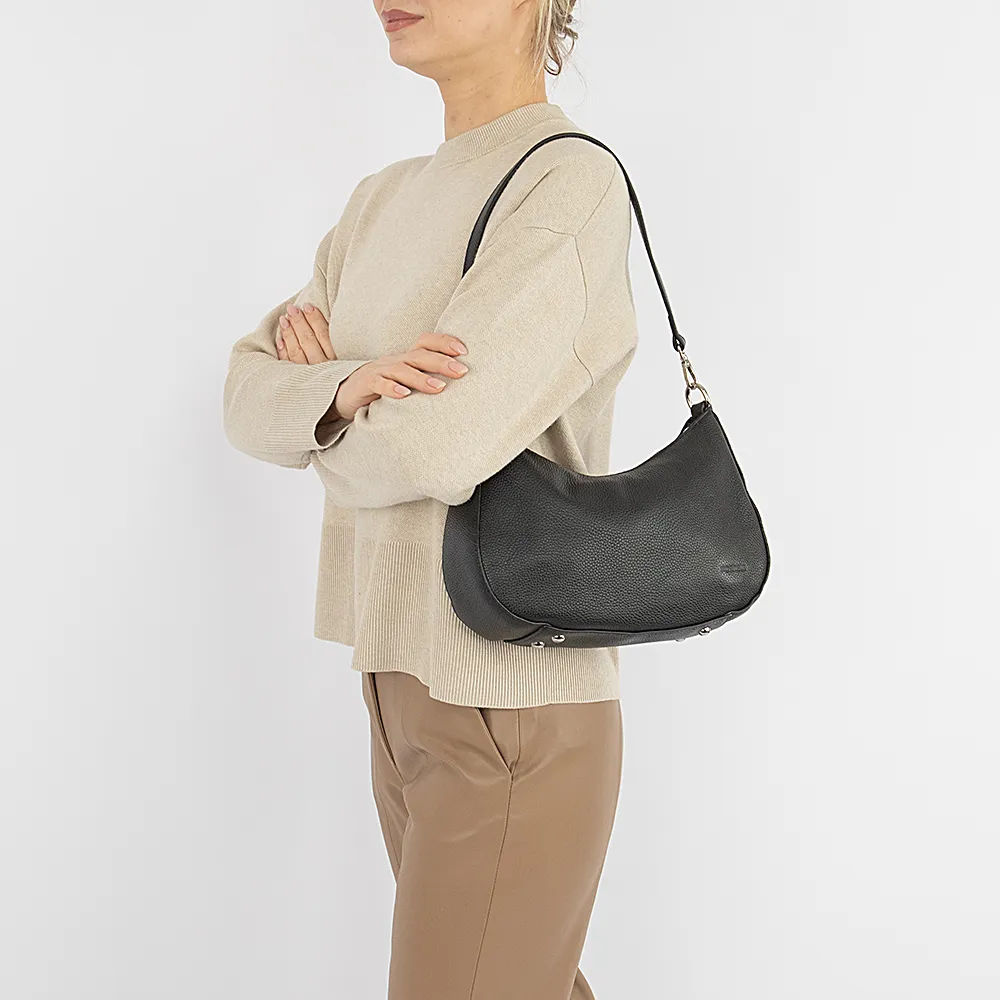 Сумка от торговой марки Poshete из натуральной кожи черного цвета. Модель со съемным регулируемым плечевым ремнем. Клапан на двух магнитных кнопках закрывает карман на молнии и отделение на молнии. В отделении: средник и карман на молнии, два накладных кармана. На задней стороне – карман на молнии. Дно оснащено металлическими ножами для защиты от износа.