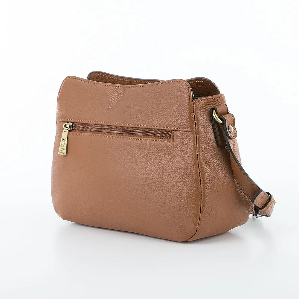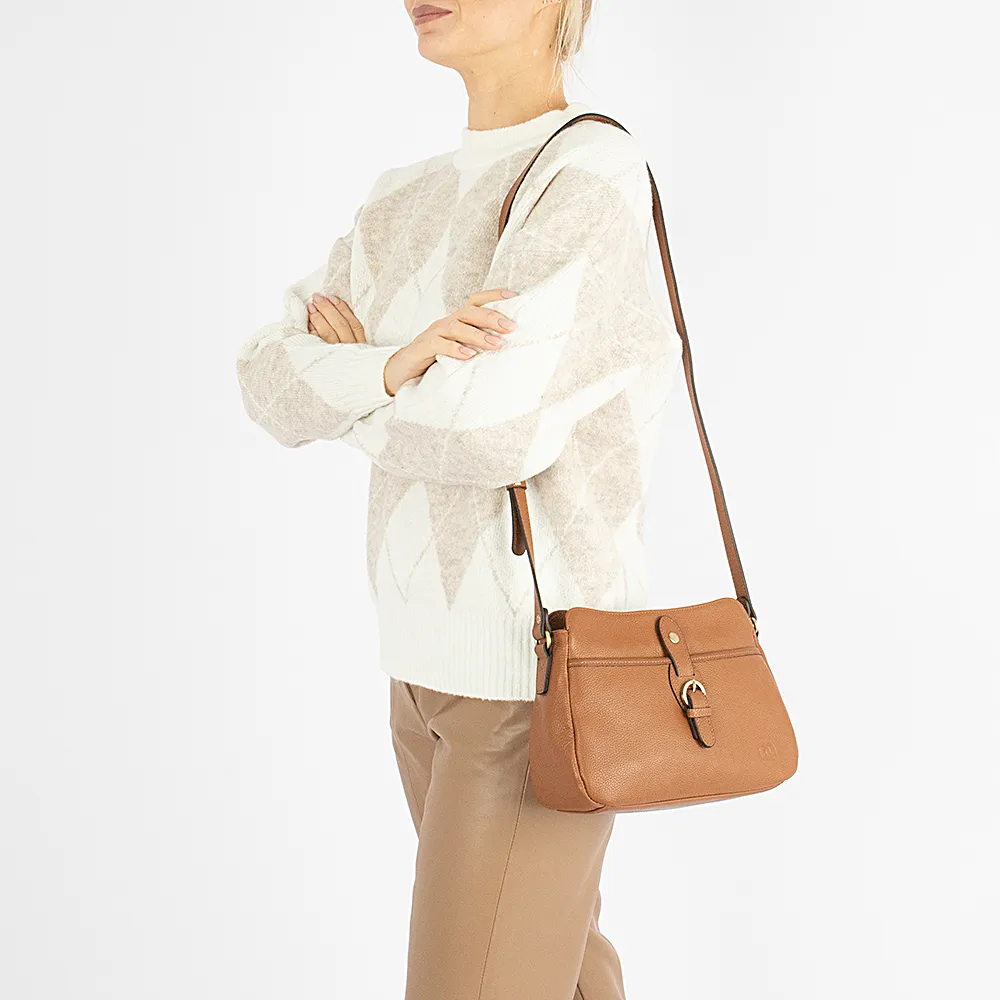 Превосходная сумка от торговой марки Francesco Molinary из натуральной кожи коричневого цвета. Модель с несъемным регулируемым плечевым ремнем. Отделение на молнии. Внутри: фирменная подкладка, средник и карман на молнии, накладной карман. На лицевой стороне – накладной карман на магнитной кнопке с декоративным ремешком с пряжкой. На задней стороне – карман на молнии.