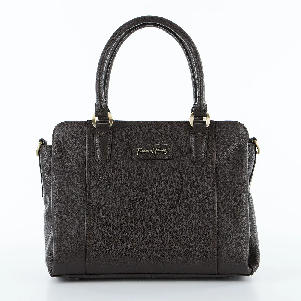 Превосходная сумка от торговой марки Francesco Molinary из натуральной кожи коричневого цвета. Компактная модель среднего размера с двумя ручками и съемным регулируемым плечевым ремнем. Закрывается молнией. Внутри: три отсека с фирменной подкладкой; в среднем отсеке – карман на молнии, накладной карман. На задней стороне – карман на молнии. На дне имеются кожаные нашивки для защиты от износа.