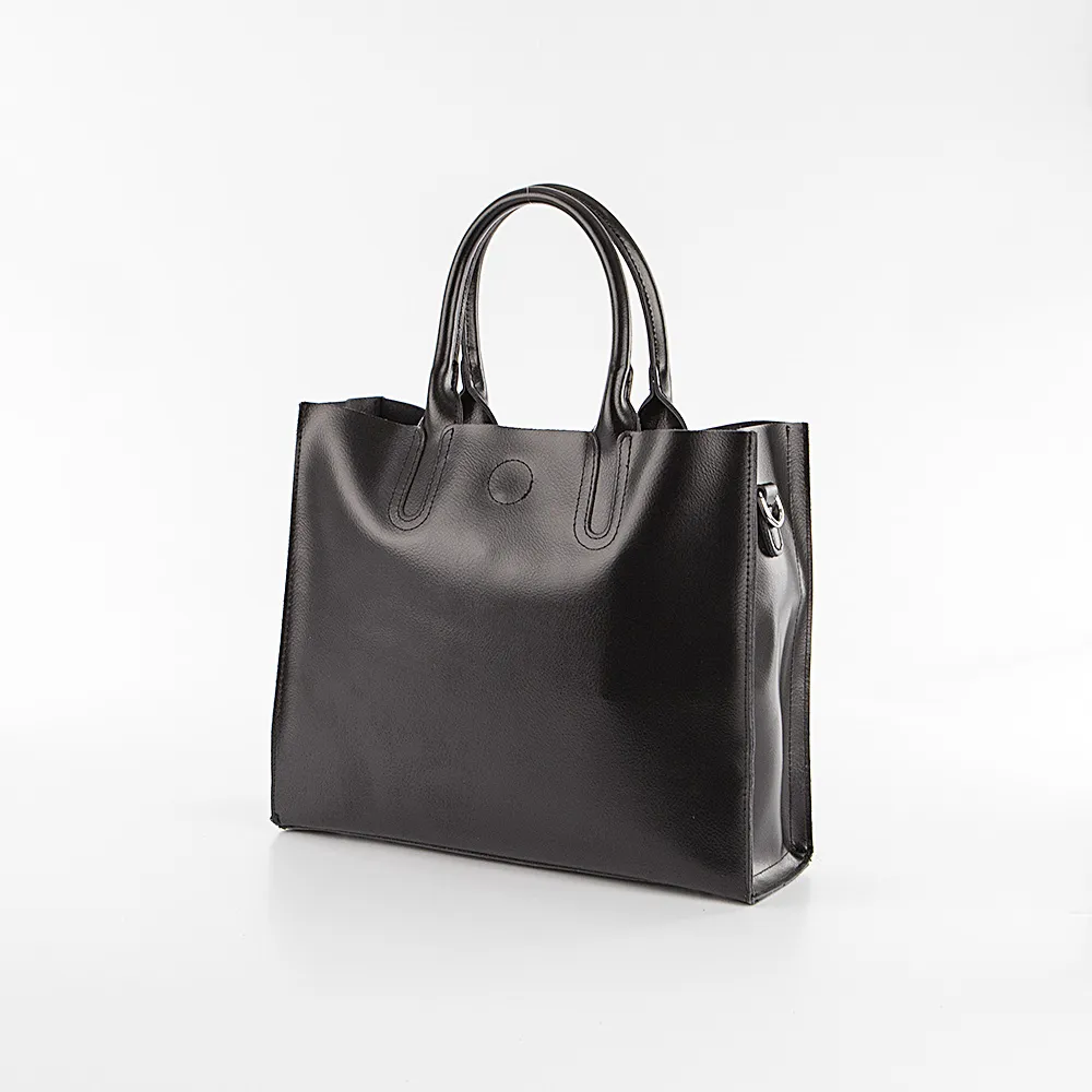 Сумка от торговой марки Poshete из натуральной кожи черного цвета. Модель с двумя ручками и съемным регулируемым плечевым ремнем. Три отделения с частичной текстильной подкладкой. Крайние отделения фиксируются магнитной кнопкой. Отделение на молнии. Внутри: карман на молнии, накладной карман. Дно оснащено металлическими ножками для защиты от износа.