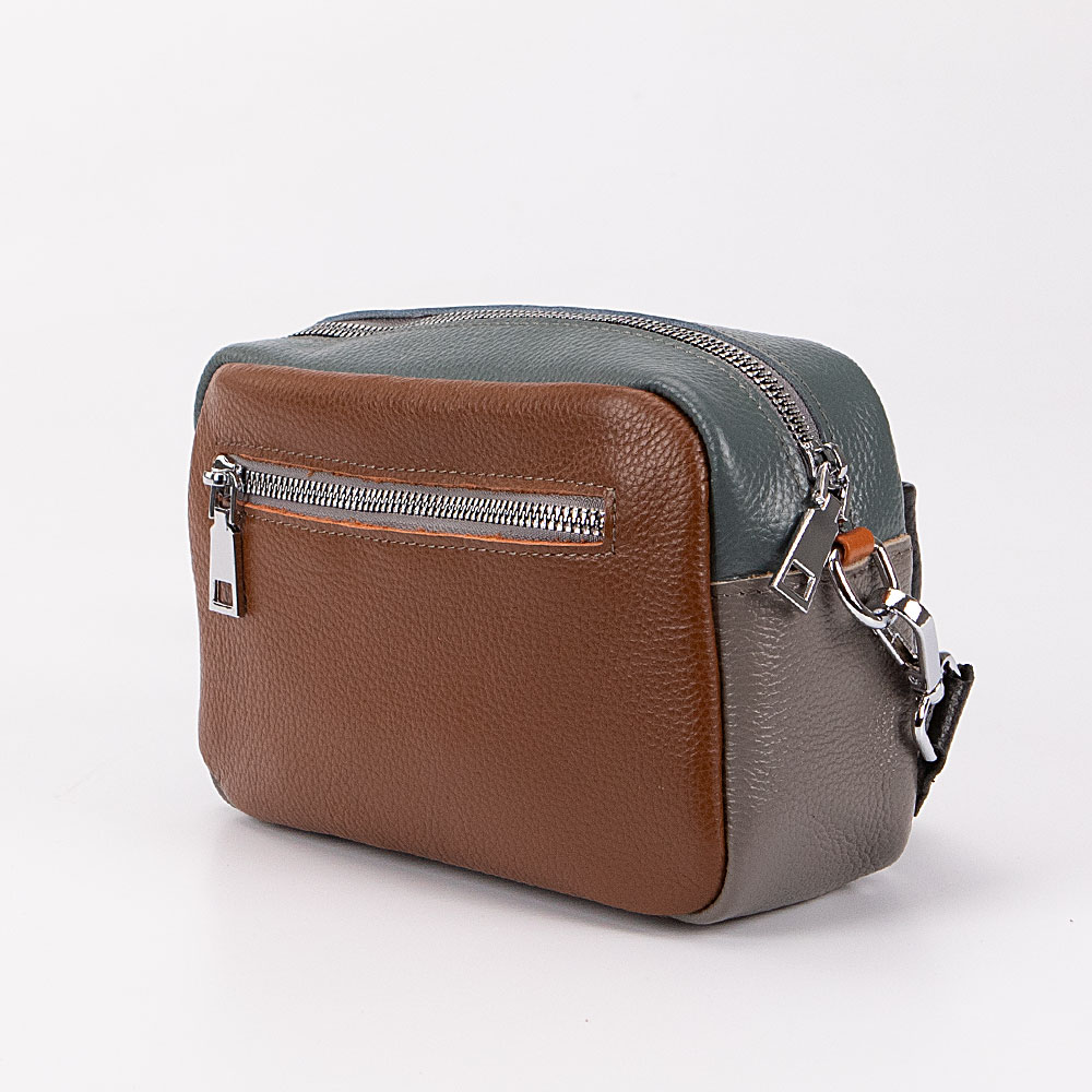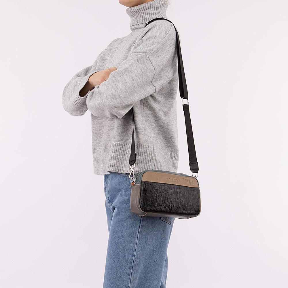 Сумка от торговой марки Poshete из натуральной кожи. Модель с широким съемным регулируемым плечевым ремнем, выполненным из текстильного материала. Отделение на молнии. Внутри: фирменная подкладка, карман на молнии, накладной карман. На лицевой стороне – накладной карман на магнитной кнопке. На задней стороне – карман на молнии.