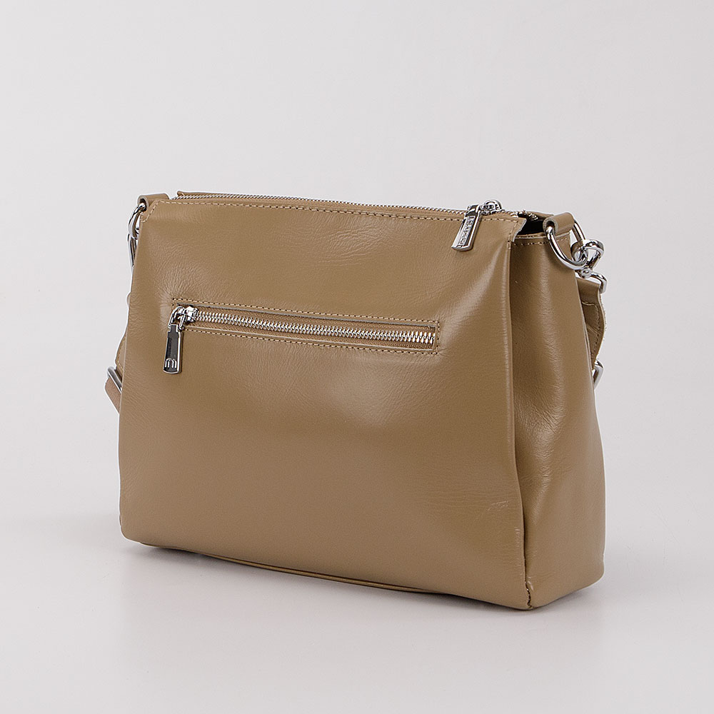 Сумка от торговой марки Poshete из натуральной кожи кофейного цвета. Модель со съемной ручкой и съемным регулируемым плечевым ремнем, выполненным из текстильного материала. Закрывается молнией. Внутри: три отсека с текстильной подкладкой; в среднем отсеке – карман на молнии, накладной карман. На лицевой стороне – декоративный клапан на магнитной кнопке. На задней стороне – карман на молнии. Дно оснащено металлическими ножками для защиты от износа.