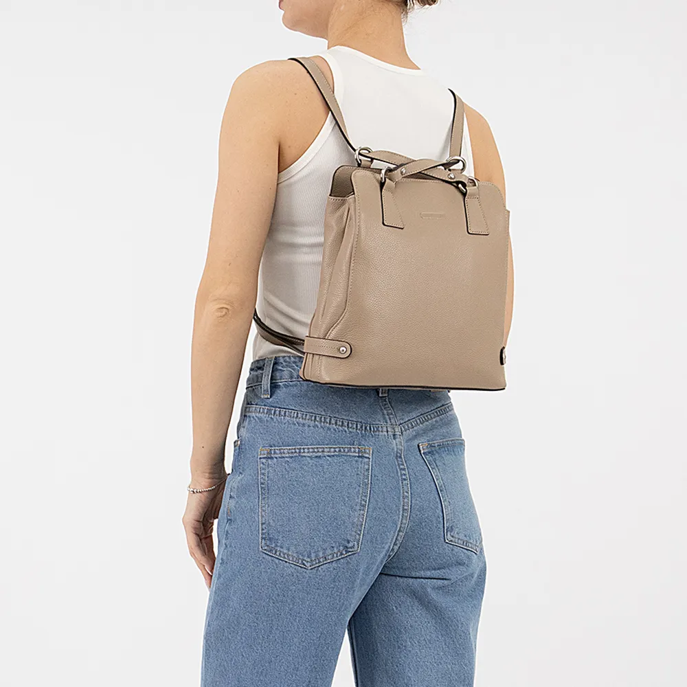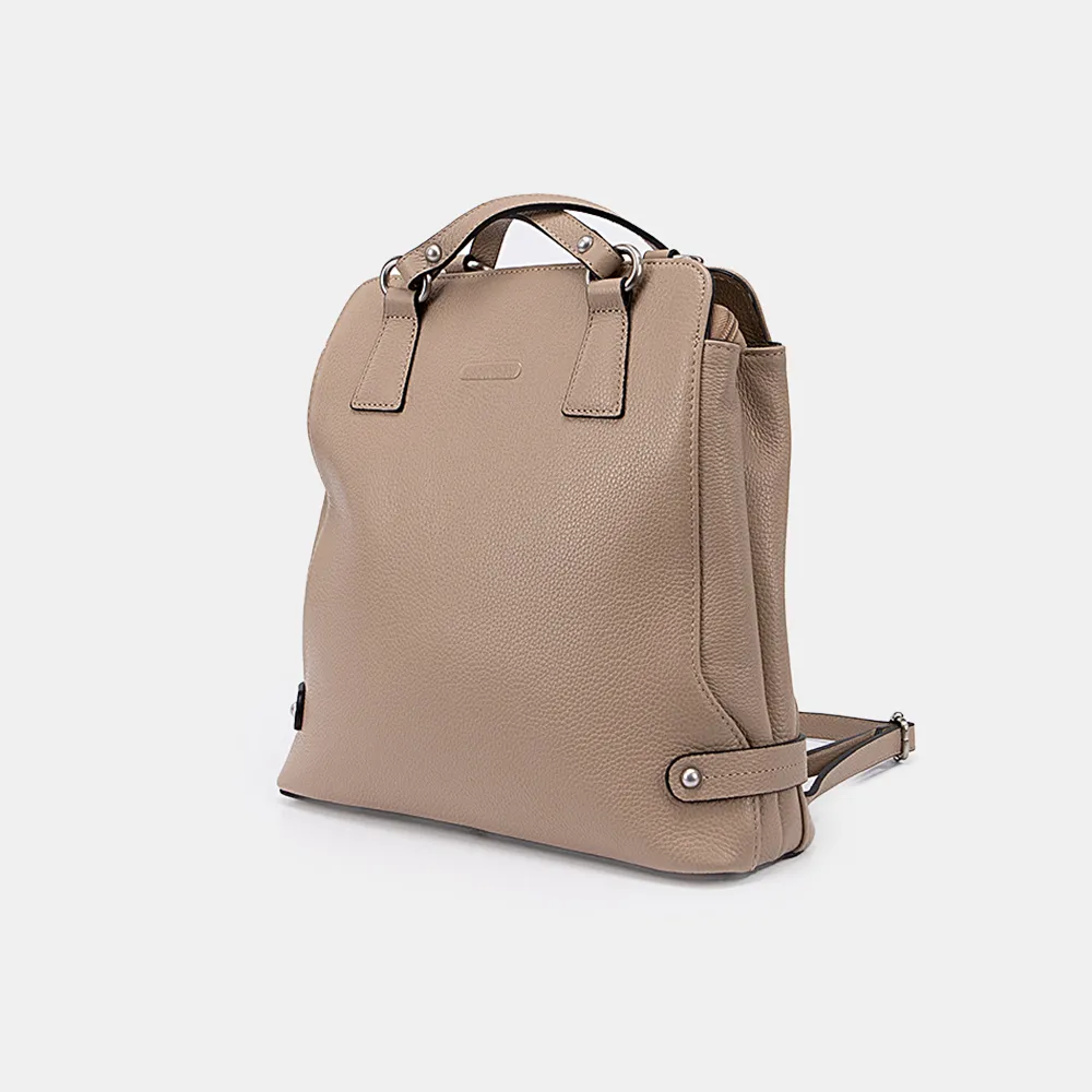 Сумка-рюкзак от торговой марки Francesco Molinary из натуральной кожи кофейного цвета. Элегантная модель с двумя ручками, которые стягиваются в плечевые лямки. Отделение на молнии. Внутри: фирменная подкладка, средник и карман на молнии, два накладных кармана. На задней стороне – карман на молнии.