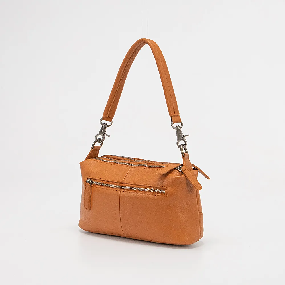 Сумка от торговой марки Francesco Molinary из натуральной кожи цвета dark camel. Модель со съемной ручкой и съемным регулируемым плечевым ремнем. Три отделения на молнии, с текстильной подкладкой. В среднем отделении: накладной карман. На задней стороне – карман на молнии.