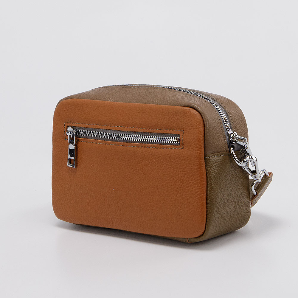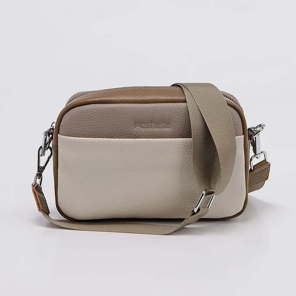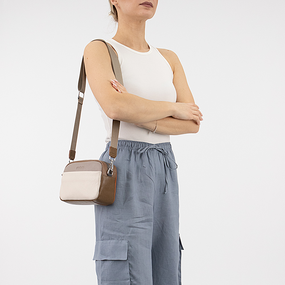 Сумка от торговой марки Poshete из натуральной кожи яркой расцветки в оттенках кофейного и коричневого цвета. Компактная модель вертикальной ориентации со съемным регулируемым плечевым ремнем. Отделение на молнии. Внутри: фирменная подкладка, карман на молнии, накладной карман. На лицевой стороне – накладной карман на магнитной кнопке. На задней стороне – карман на молнии.