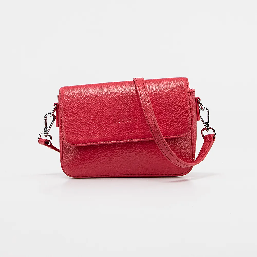 Сумка от торговой марки Poshete из натуральной кожи красного цвета. Модель с изящным съемным регулируемым плечевым ремнем. Закрывается клапаном на магнитной кнопке. Отделение на молнии. Внутри: фирменная подкладка, карман на молнии, накладной карман.