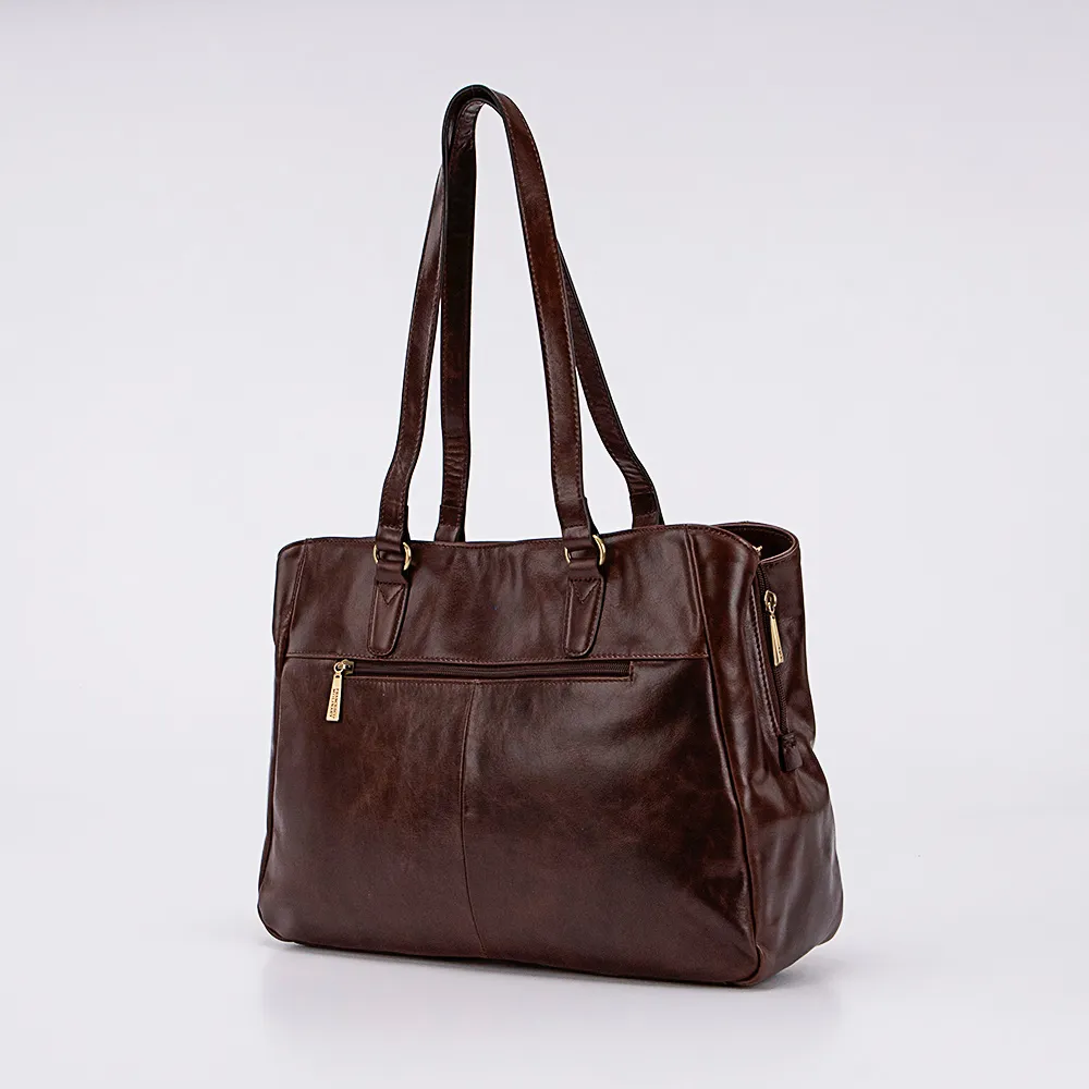 Сумка от торговой марки Francesco Molinary из натуральной кожи коричневого цвета. Вместительная модель с двумя удлиненными ручками. Три отделения на молнии, с фирменной подкладкой. Крайние фиксируются магнитной кнопкой. Среднее отделение на молнии; широко раскрывается, что обеспечивает удобный доступ. Внутри: карман на молнии. На задней стороне – карман на молнии.