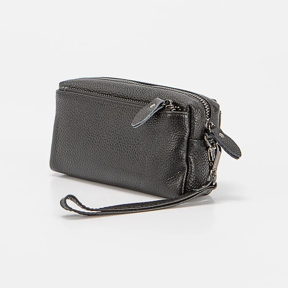 Сумка кросс-боди от торговой марки Poshete из натуральной кожи черного цвета. Компактная модель со съемным регулируемым плечевым ремнем и съемным ремешком для запястья. Отделение на молнии. Внутри: карман на молнии. На лицевой и задней сторонах – карман на молнии.