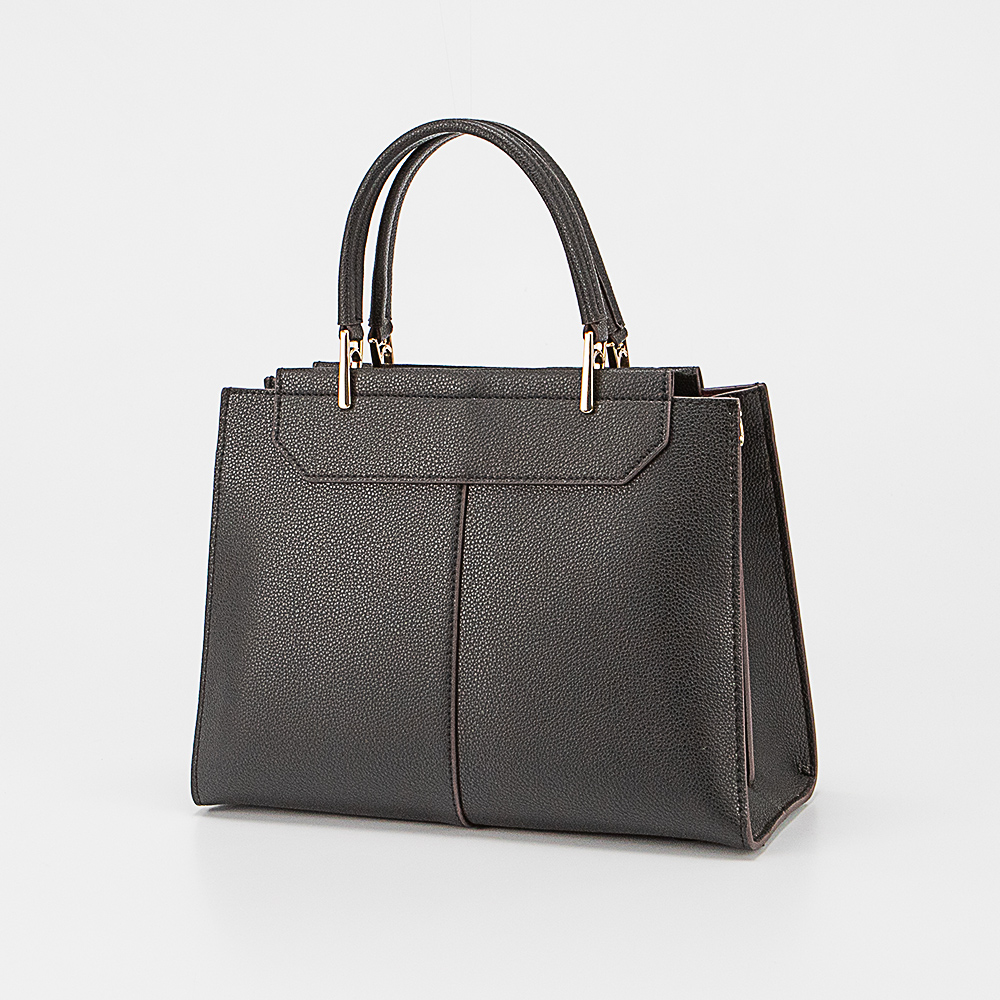 Сумка от торговой марки Poshete из натуральной кожи черного цвета. Модель с двумя ручками и съемным регулируемым плечевым ремнем. Три отделения с фирменной подкладкой. Крайние фиксируются магнитной кнопкой. Основное отделение на молнии. Внутри: карман на молнии и накладной карман, кожаная перегородка образует два отсека. На дне имеются кожаные накладки для защиты от износа.