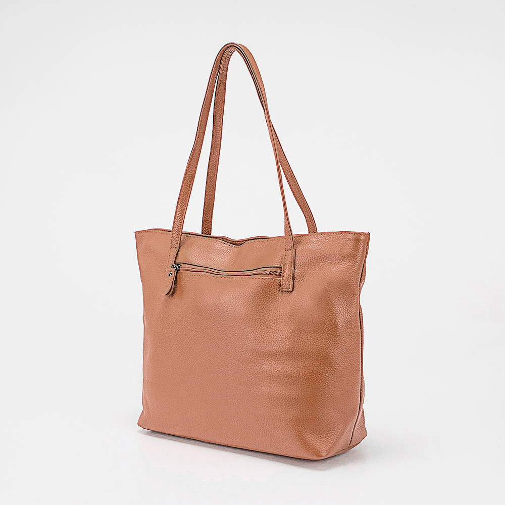 Сумка от торговой марки Poshete из натуральной кожи яркого цвета camel. Модель с двумя удлиненными ручками. Отделение на молнии. Внутри: фирменная подкладка, карман на молнии, накладной карман, перегородка с карманом на молнии, образующая накладной карман. На задней стороне – карман на молнии. В комплекте имеется кошелек с отделением на молнии и ремешком для крепления.