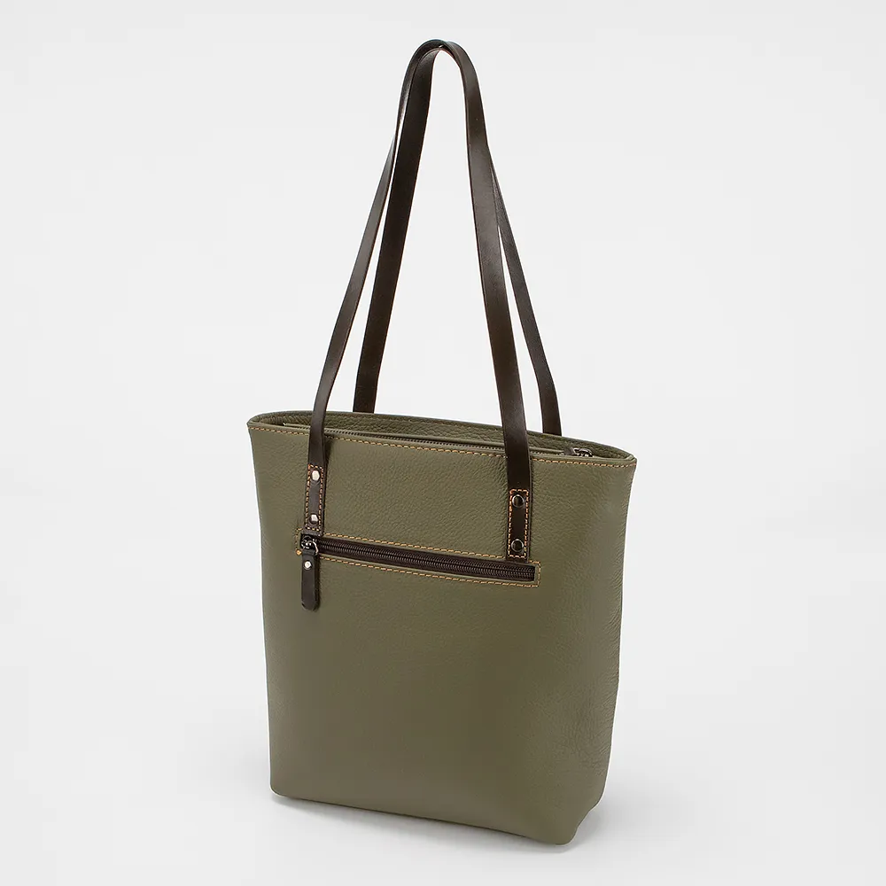 Сумка от торговой марки Poshete из натуральной кожи. Вместительная модель вертикальной ориентации, с двумя удлиненными ручками. Глубокое отделение на молнии. Внутри: фирменная подкладка, карман на молнии, два накладных кармана. На задней стороне – карман на молнии.
