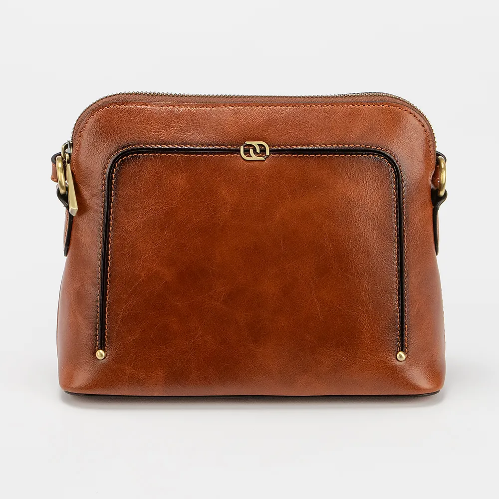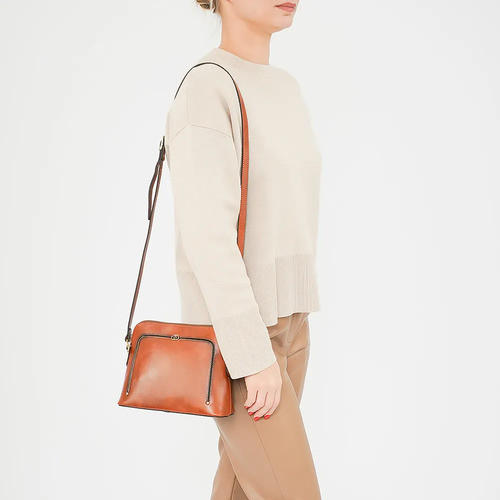 Сумка кросс-боди от торговой марки Francesco Molinary выполнена из натуральной кожи коричневого цвета. Модель с несъемным регулируемым плечевым ремнем. Отделение на молнии. Внутри: фирменная подкладка, карман на молнии, накладной карман. На задней стороне - карман на молнии. Лицевая сторона декорирована отстрочкой.