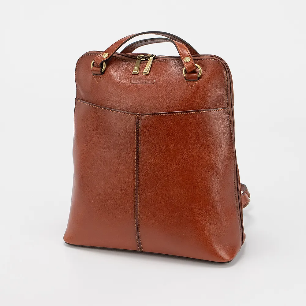 Cумка-рюкзак от торговой марки Francesco Molinary из натуральной кожи коричневого цвета. Модель с двумя удлиненными ручками, которые стягиваются в плечевые лямки. Отделение на молнии, с фирменной подкладкой. Внутри – два кармана на молнии. На лицевой стороне - накладной карман на магните. На задней стороне – карман на молнии.