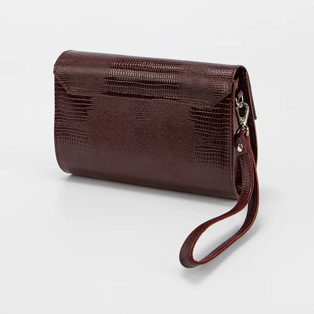 Сумка от торговой марки Francesco Molinary из натуральной кожи черного цвета с тиснением под рептилию. Модель со съемным ремешком для запястья и съемным регулируемым плечевым ремнем. Закрывается клапаном на магнитной кнопке. Внутри: фирменная подкладка, карман на молнии.