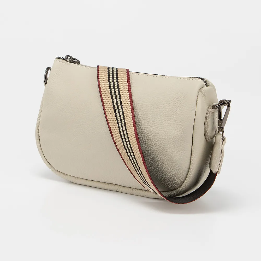 Сумка-планшет от торговой марки Poshete из натуральной кожи светло-бежевого цвета. Модель с длинным регулируемым плечевым ремнем, выполненным из текстильного материала. Отделение на молнии. Внутри фирменная подкладка, карман на молнии, накладной карман.