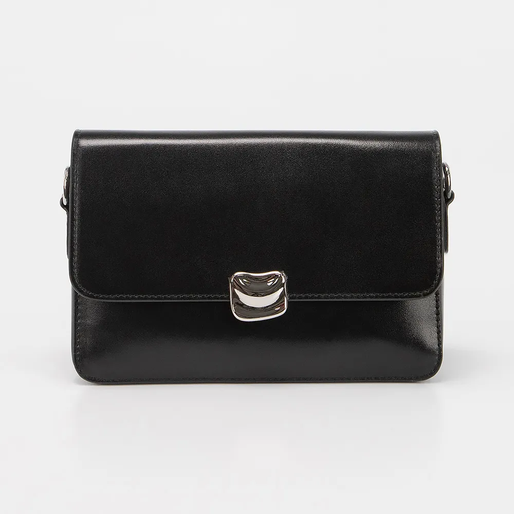 Сумка от торговой марки Poshete из натуральной кожи черного цвета. Модель со съемным плечевым ремнем. Клапан на магнитной кнопке закрывает отделение на молнии. Внутри: текстильная подкладка, карман и средник на молнии. На задней стороне – карман на молнии.