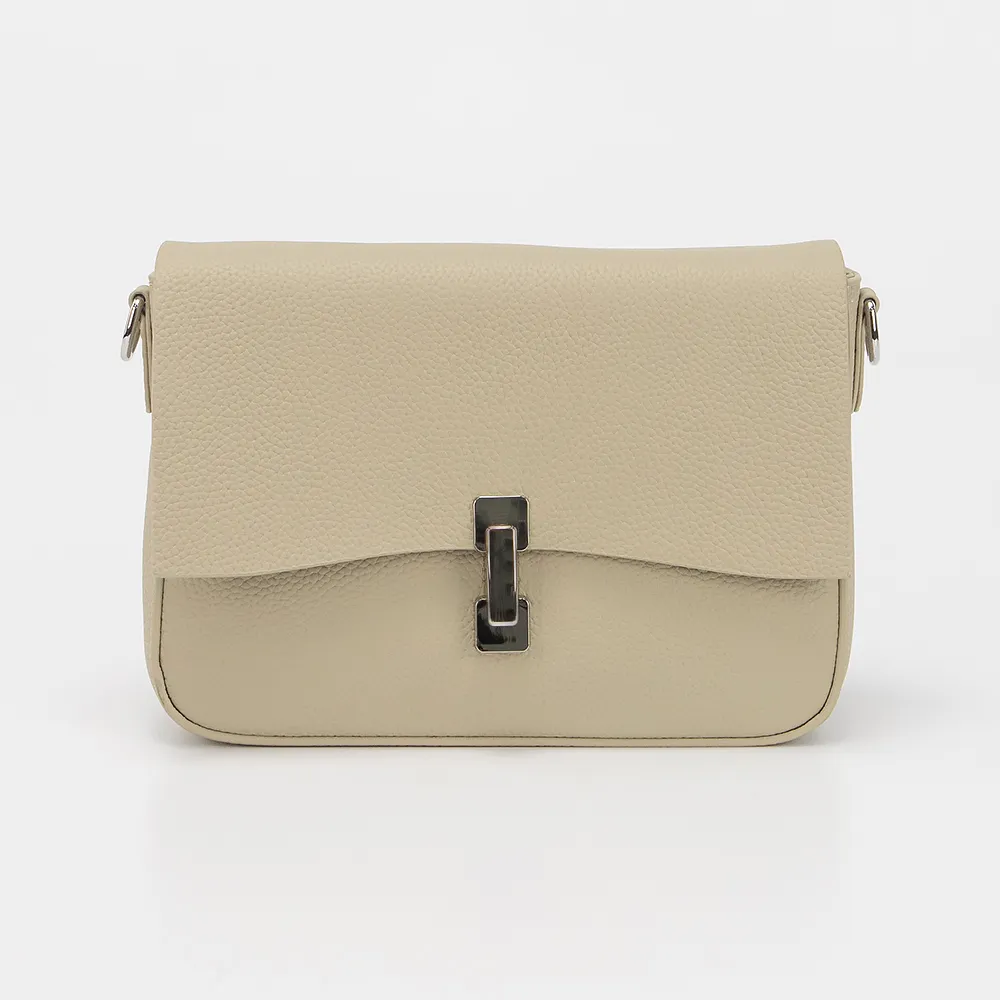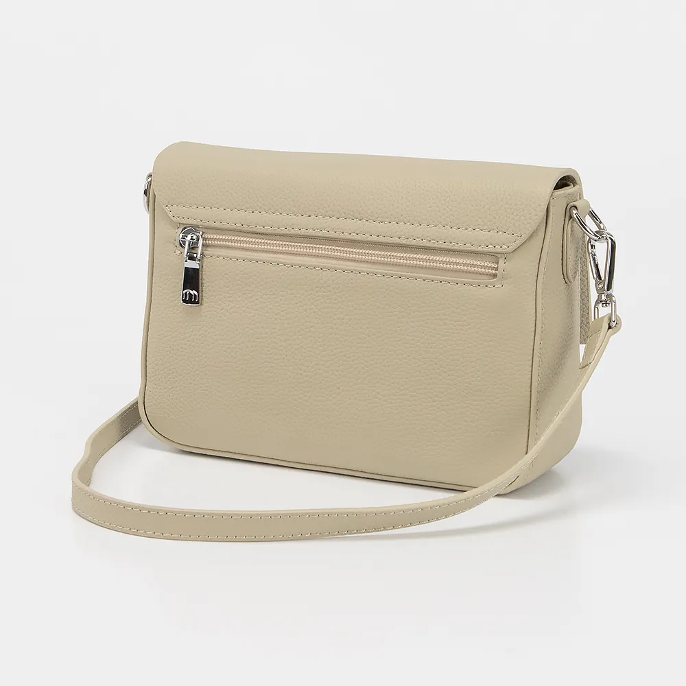 Сумка от торговой марки Poshete из натуральной кожи зеленого цвета. Компактная модель с узким плечевым ремнем. Клапан на поворотном замке закрывает отделение на молнии. Внутри: текстильная фирменная подкладка, карман и средник на молнии, накладной карман. На задней стороне - карман на молнии.