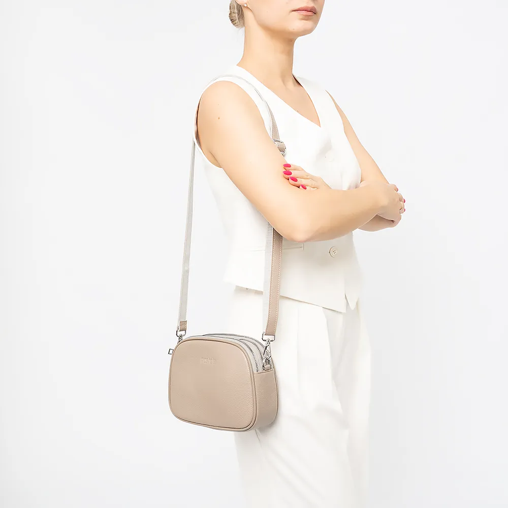 Сумка от торговой марки Poshete из натуральной кожи кофейного цвета. Модель с длинным регулируемым плечевым ремнем. Три отделения на молнии, с фирменной подкладкой. В заднем - карман на молнии, в переднем - накладной карман. На задней стороне - карман на молнии.