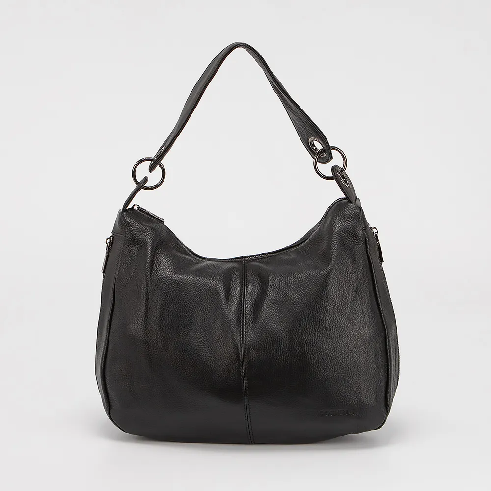 Сумка от торговой марки Poshete выполнена из натуральной кожи черного цвета. Модель с удлиненной ручкой. Отделение на молнии. Внутри: текстильная подкладка, два кармана на молнии, накладной карман. По бокам - вертикальные карманы на молнии. С задней стороны - карман на молнии.