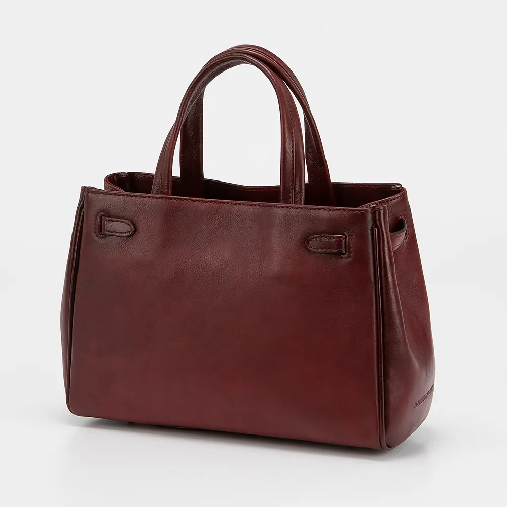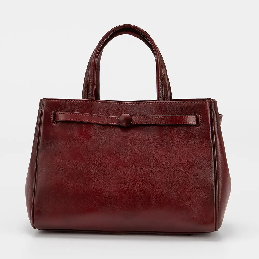 Сумка от торговой марки Francesco Molinary выполнена из натуральной кожи бордового цвета. Модель с двумя ручками и съемным регулируемям плечевым ремнем. По верхнему краю декорирована изящным ремешком. Отделение на молнии. Внутри: текстильная подкладка, карман на молнии, накладной карман. Дно оснащено металлическими ножками для защиты от износа.