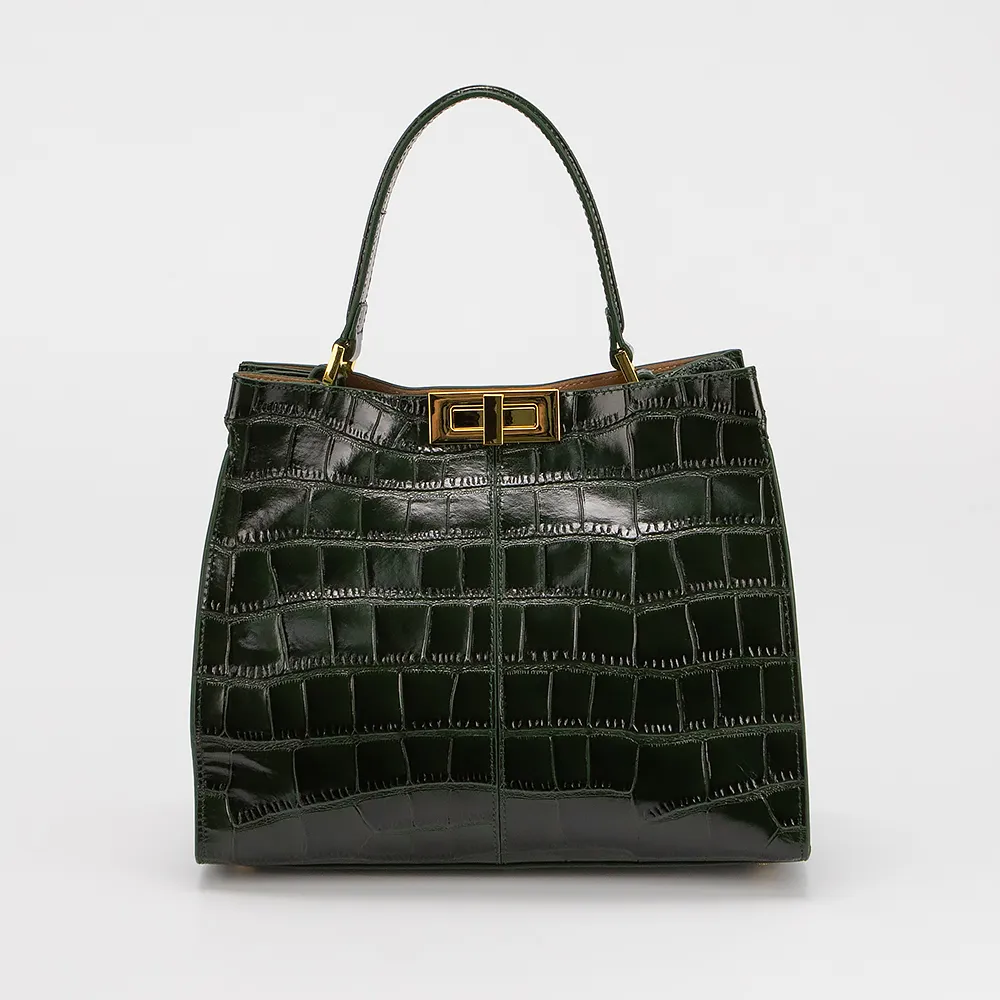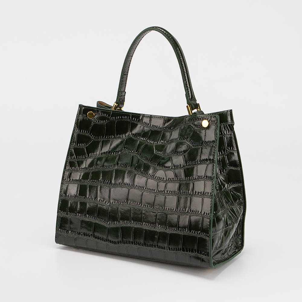 Сумка от торговой марки Francesco Molinary выполнена из натуральной кожи зеленого цвета с тиснением под рептилию. Модель с длинной ручкой и длинным регулируемым плечевым ремнем. Отделение на поворотном замке. Внутри: без подкладки, накладной карман. Дно оснащено металлическими ножками для защиты от износа.