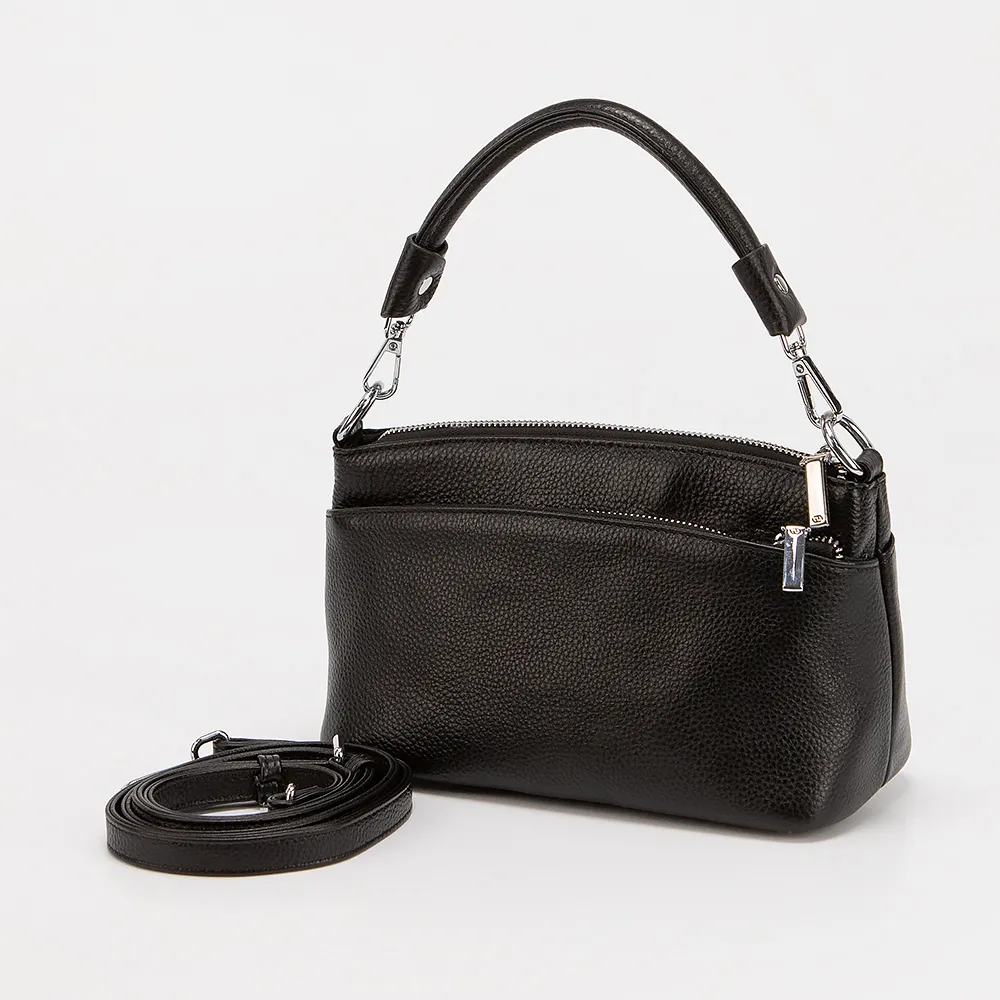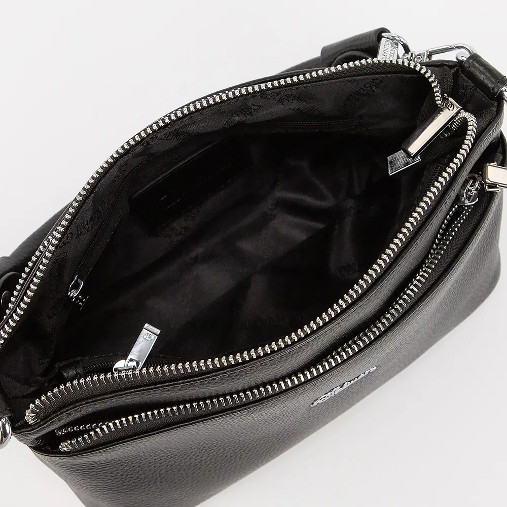 Сумка от торговой марки Francesco Molinary выполнена из натуральной кожи черного цвета. Модель с удлиненной съемной ручкой и длинным регулируемым плечевым ремнем. Отделение на молнии. Внутри: текстильная подкладка, карман и средник на молнии, накладной карман. С лицевой и задней стороны - карман на молнии. Дно оснащено металлическими ножками для защиты от износа.