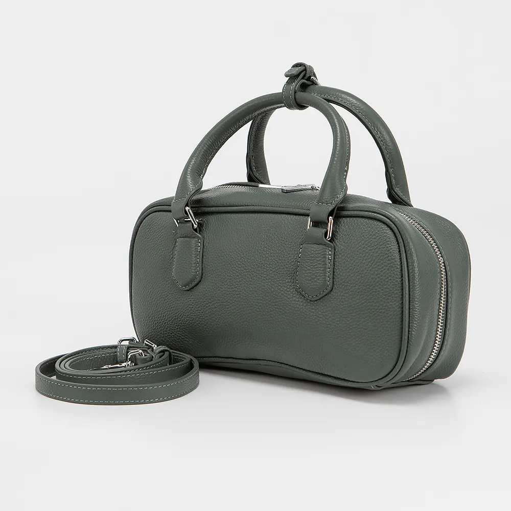 Сумка от торговой марки Poshete из натуральной кожи зеленого цвета. Модель с двумя ручками с фиксатором и съемным регулируемым плечевым ремнем. Отделение на молнии. Внутри: фирменная подкладка, карман на молнии, накладной карман.