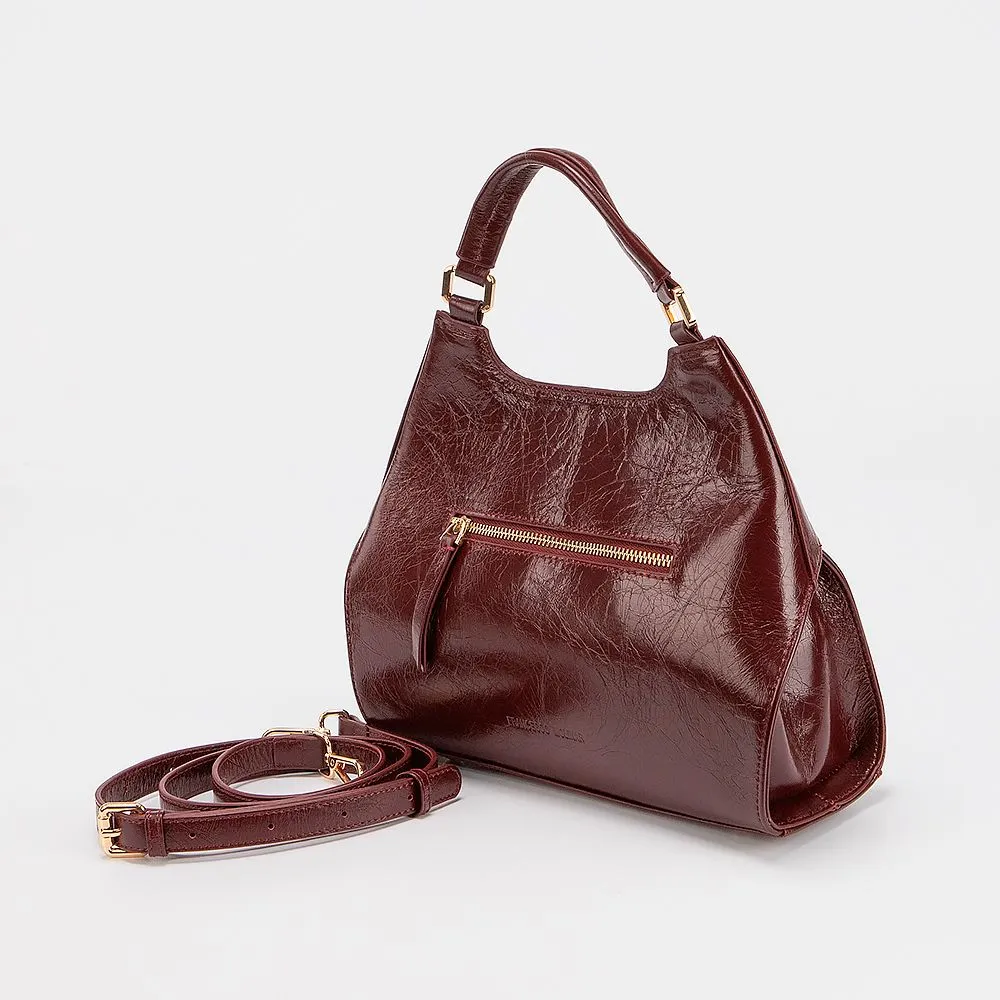 Сумка от торговой марки Francesco Molinary выполнена из натуральной замши бордового цвета. Модель с одной ручкой и съемным регулируемым плечевым ремнем. Оригинальный клапан закрывает отделение с текстильной подкладкой. Внутри: карман на молнии, накладной карман. На задней стороне карман на молнии. Дно оснащено металлическими ножками для защиты от износа.