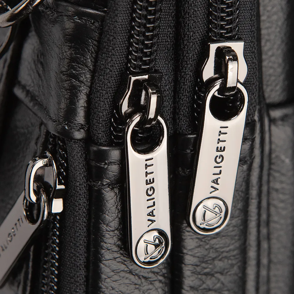 Сумка-планшет от торговой марки Valigetti выполнена из натуральной кожи черного цвета. Модель вертикальной ориентации со съемным регулируемым плечевым ремнем. Два отделения на молнии. С лицевой стороны карман с клапаном. С задней стороны карабин и лямка для крепления на поясной ремень.