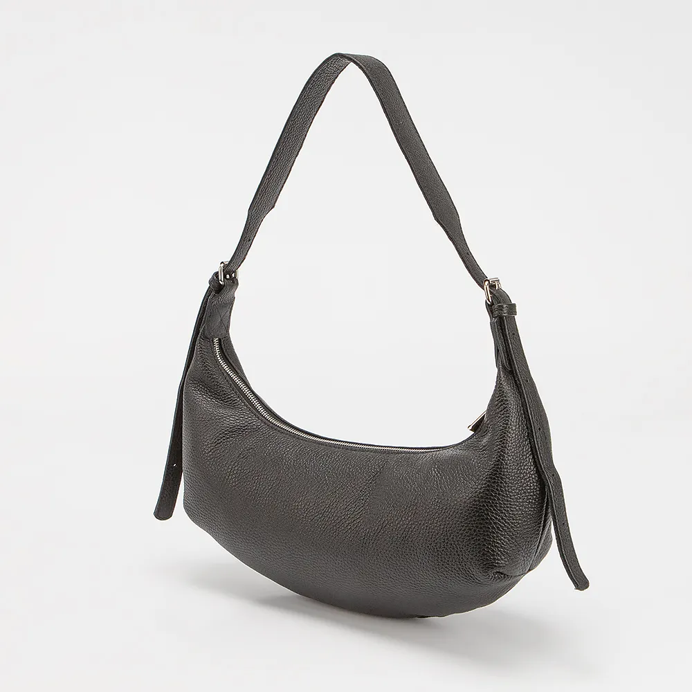 Сумка от торговой марки Francesco Molinary из натуральной кожи черного цвета. Модель оригинальной формы с длинной регулируемой ручкой. Отделение на молнии. Внутри: отсек с фирменной подкладкой, карман на молнии, накладной карман.