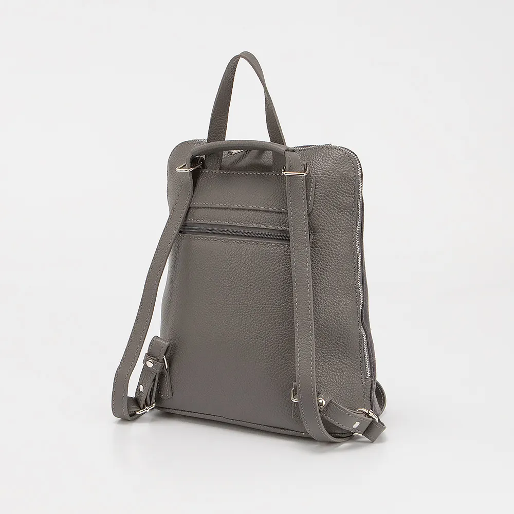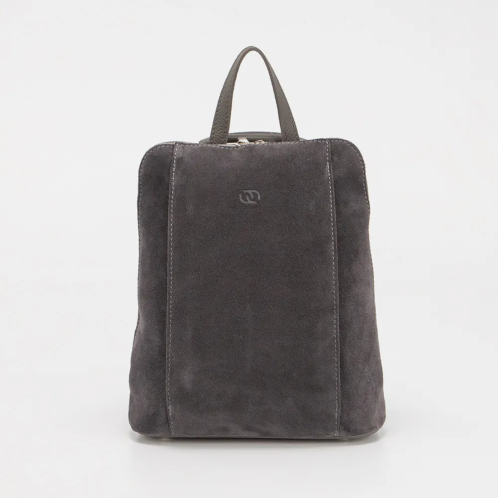 Сумка-рюкзак от торговой марки Francesco Molinary выполнена из натуральной кожи и замши в сочетании синего и серого цвета. Модель с ручкой и ремнем, который стягивается в две плечевые лямки. Отделение на молнии, раскрывается по трем сторонам, открытие регулируется вытачками. Внутри: фирменная подкладка, карман и средник на молнии, накладной карман. На лицевой стороне - два вертикальных кармана на молнии. На задней стороне - карман на молнии. Дно оснащено металлическими ножками для защиты от износа.