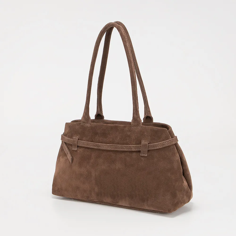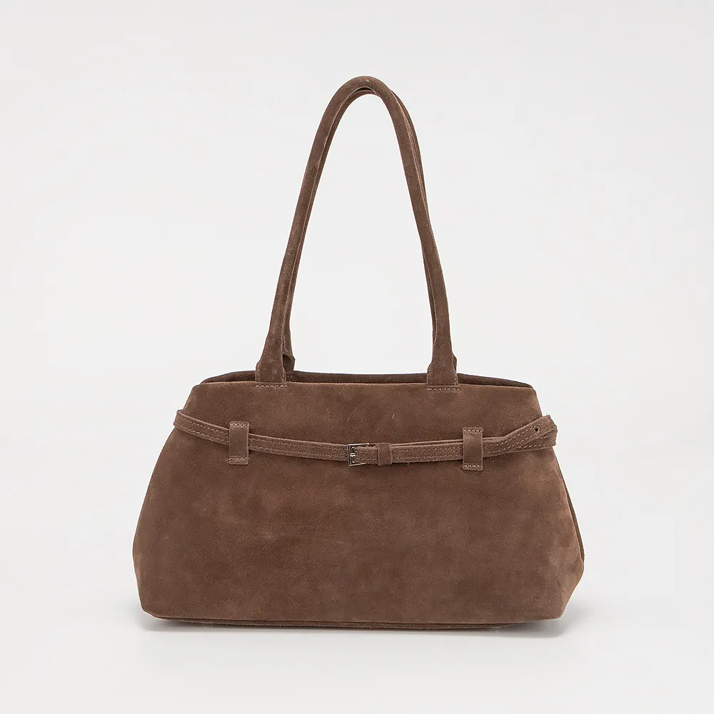 Сумка от торговой марки Francesco Molinary из натуральной замши коричневого цвета. Модель с двумя длинными ручками. Отделение на молнии. Внутри: фирменная подкладка, карман на молнии, накладной карман. Дно оснащено металлическими ножками для защиты от износа.