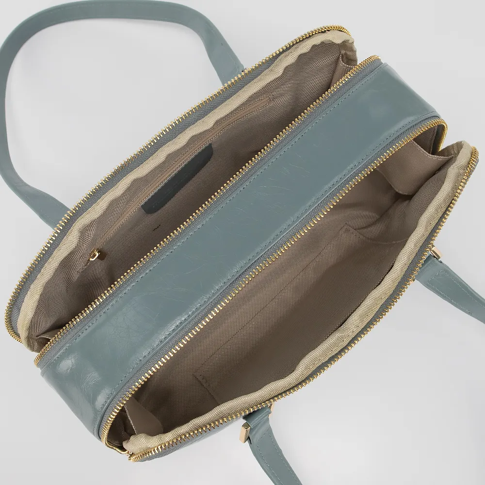 Сумка от торговой марки Francesco Molinary выполнена из натуральной кожи мятного цвета. Модель горизонтальной ориентации с двумя длинными ручками. Два отделения на молнии. Внутри: текстильная подкладка, карман на молнии, накладной карман. Дно оснащено металлическими ножками для защиты от износа.