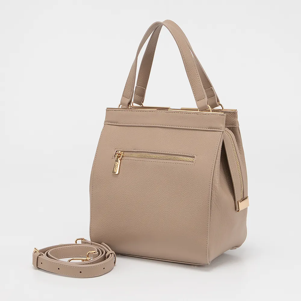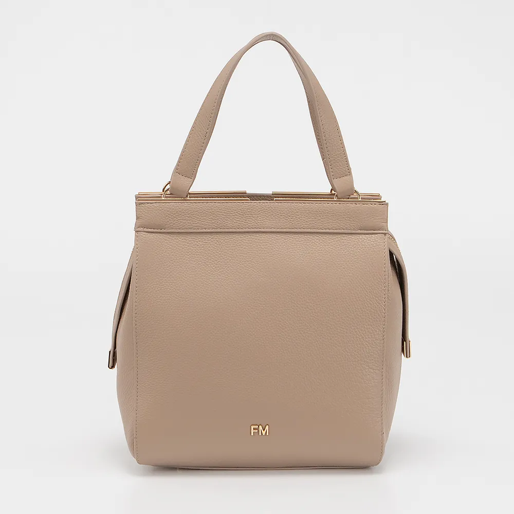 Сумка от торговой марки Francesco Molinary выполнена из натуральной кожи бежевого цвета. Модель с двумя ручками и съемным регулируемым плечевым ремнем. Отделение на молнии. Внутри: текстильная подкладка, карман на молнии, накладной карман. Дно оснащено металлическими ножками для защиты от износа.