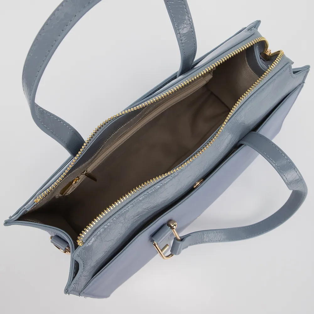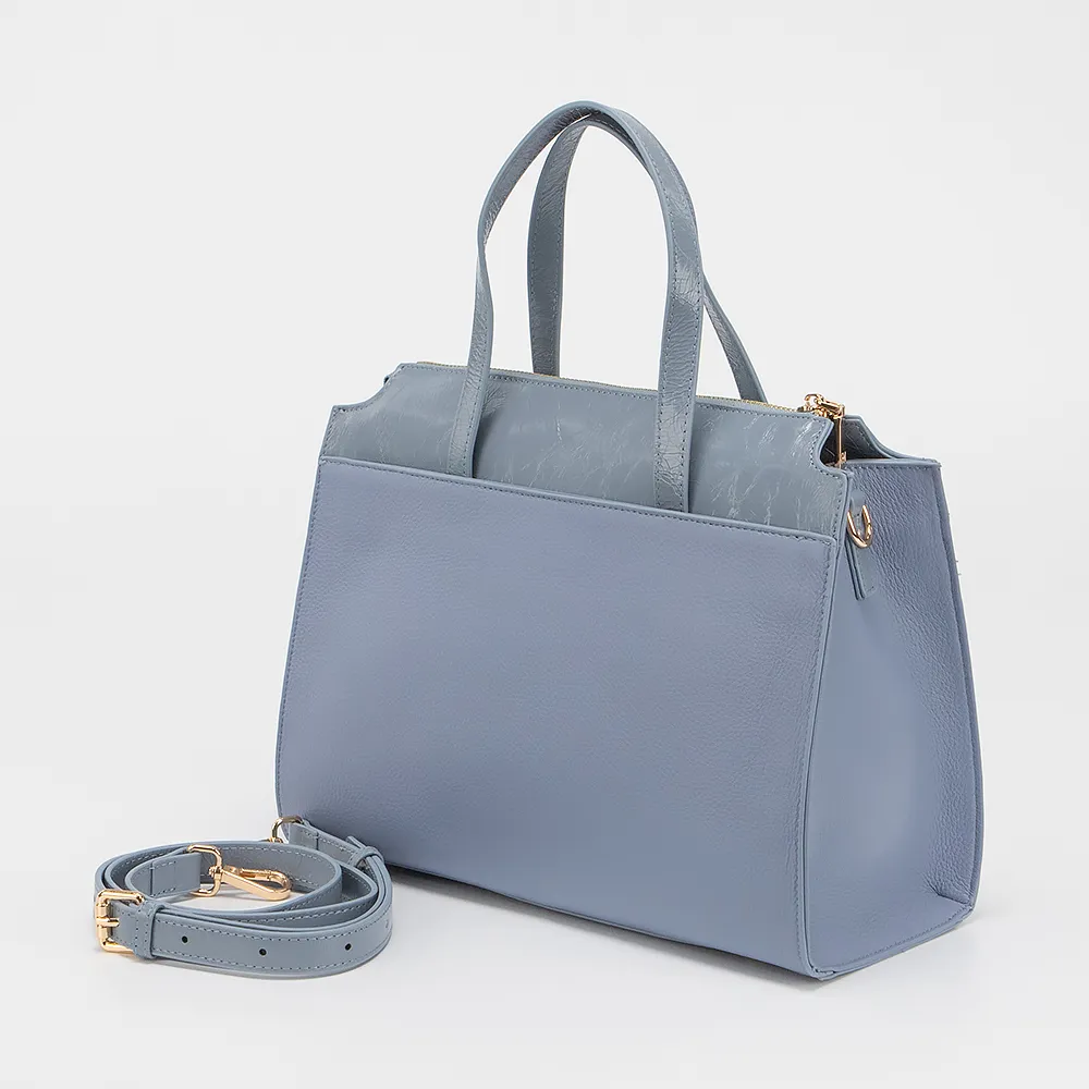 Сумка от торговой марки Francesco Molinary выполнена из натуральной кожи голубого цвета. Модель с двумя ручками и съемным регулируемым плечевым ремнем. Декорирована подвеской. Отделение на молнии. Внутри: текстильная подкладка, карман на молнии, накладной карман. На лицевой стороне - накладной карман на магнитной кнопке. Дно оснащено металлическими ножками для защиты от износа.
