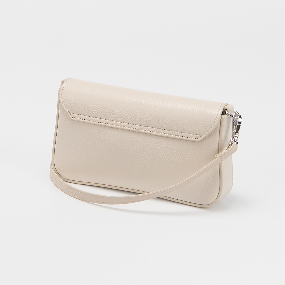 Сумка от торговой марки Poshete выполнена из натуральной кожи бежевого цвета. Компактная модель со съемным плечевым ремнем. Клапан на магнитной кнопке закрывает отделение с текстильной подкладкой. Внутри: карман на молнии.