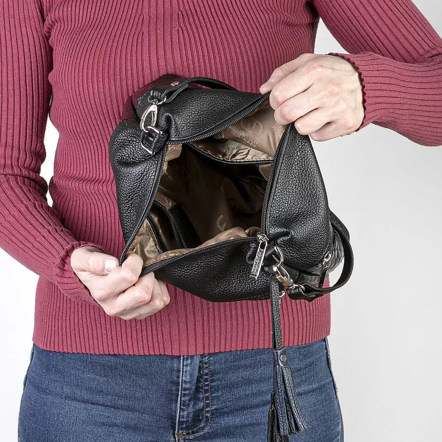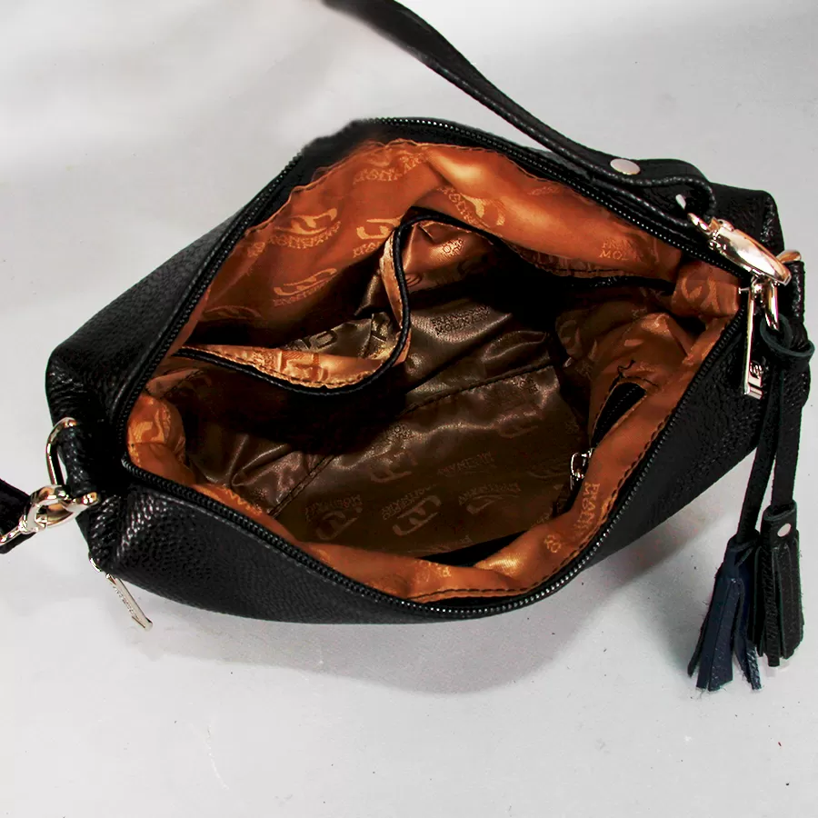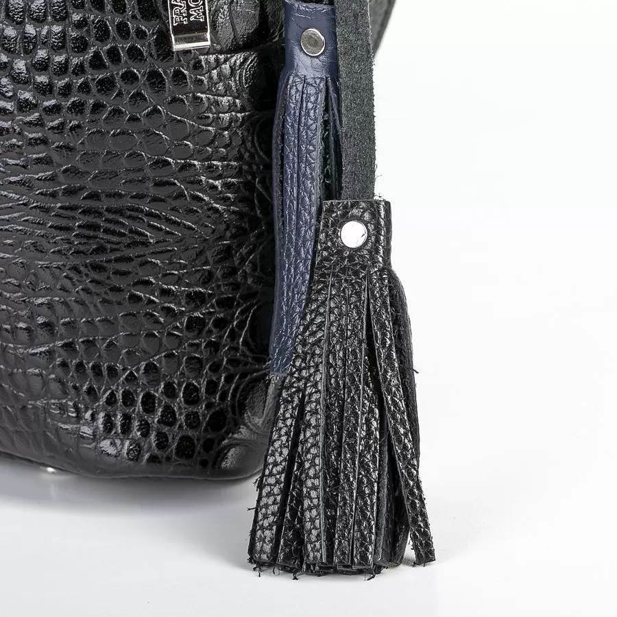 • Оригинальная сумка, изготовленная из мягкой натуральной кожи, отлично подходит для прогулки по парку или похода в ресторан. Благодаря длинному плечевому ремню ее можно носить через плечо
