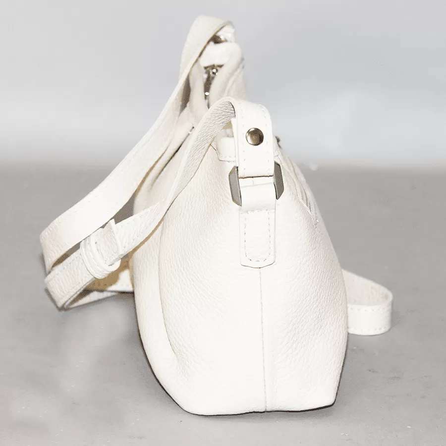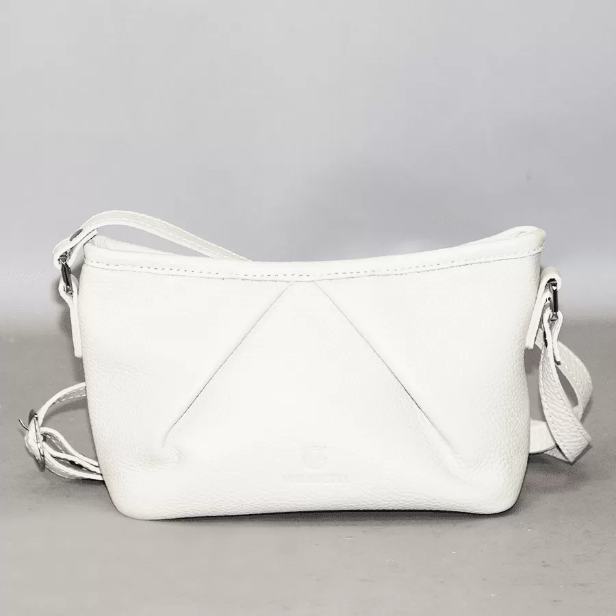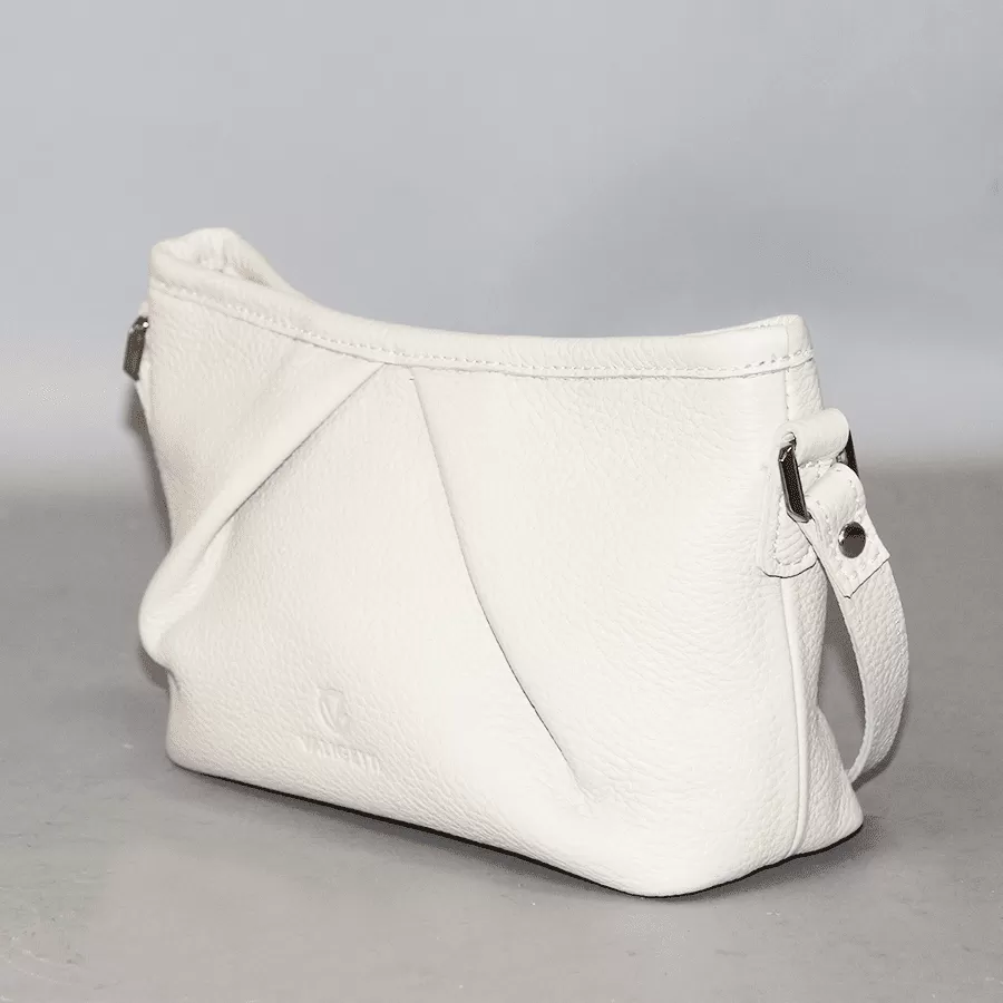 Сумка Valigetti выполнена из натуральной кожи в белом цвете. Прочная молния надёжно закрывает её.