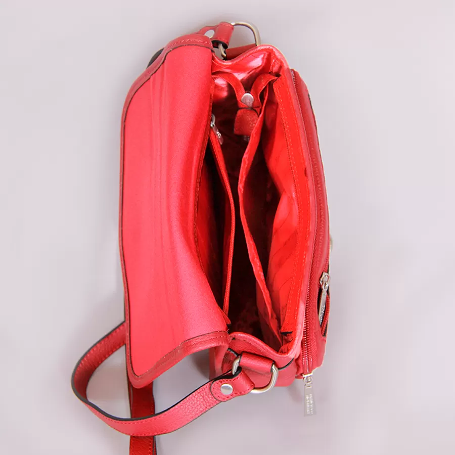 • Оригинальная сумка, изготовленная из мягкой натуральной кожи, отлично подходит для прогулки по парку или похода в ресторан. Благодаря длинному плечевому ремню ее можно носить через плечо