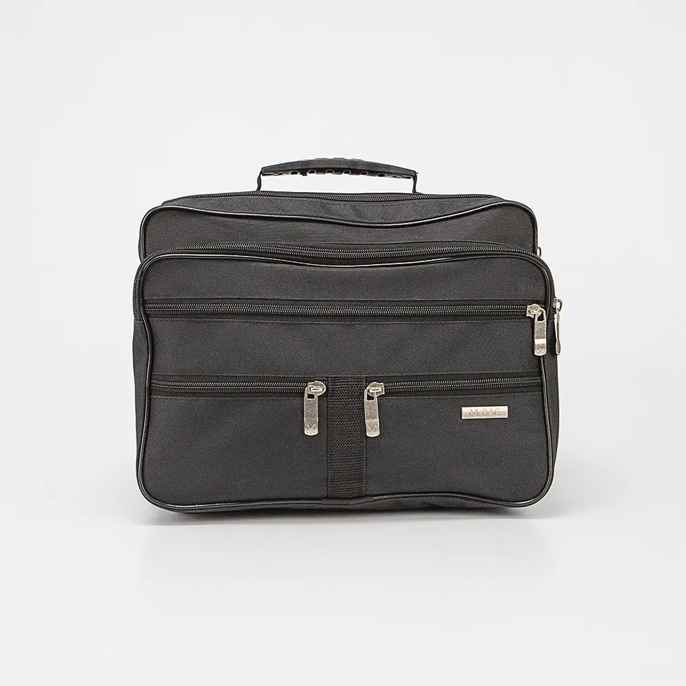 Мужская сумка от торговой марки Mr.Bag из плотного текстильного материала черного цвета. Модель с одной ручкой-переноской и съемным регулируемым плечевым ремнем. Два отделения на молнии, с текстильной подкладкой. На лицевой стороне - четыре кармана на молнии.