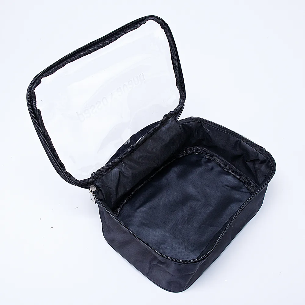 Косметичка от торговой марки Passo Avanti из мягкого пластика в черном цвете. Модель с одной ручкой. Отделение на молнии с частичной подкладкой. Лицевая сторона декорирована принтом с названием бренда.